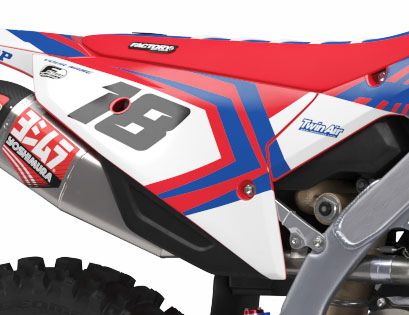 Vollständige Grafikkits werden auf Wunsch mit dem Logo Ihres Sponsors, Ihrer Nummer und Ihren Farben auf das beste Vinyl der Branche von Substance® gedruckt. Die meisten Modelle umfassen Grafiken für Abdeckungen, Frontspitze, hinteren Kotflügel, Seiten/Frontplatte, Schwinge und Gabelaufkleber.