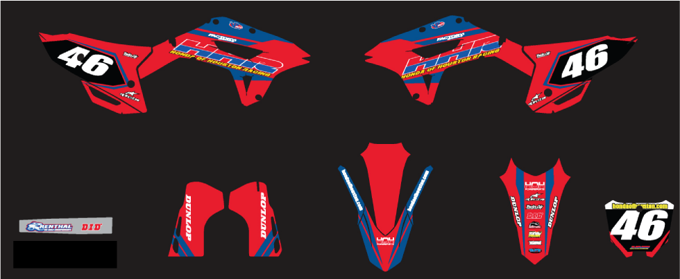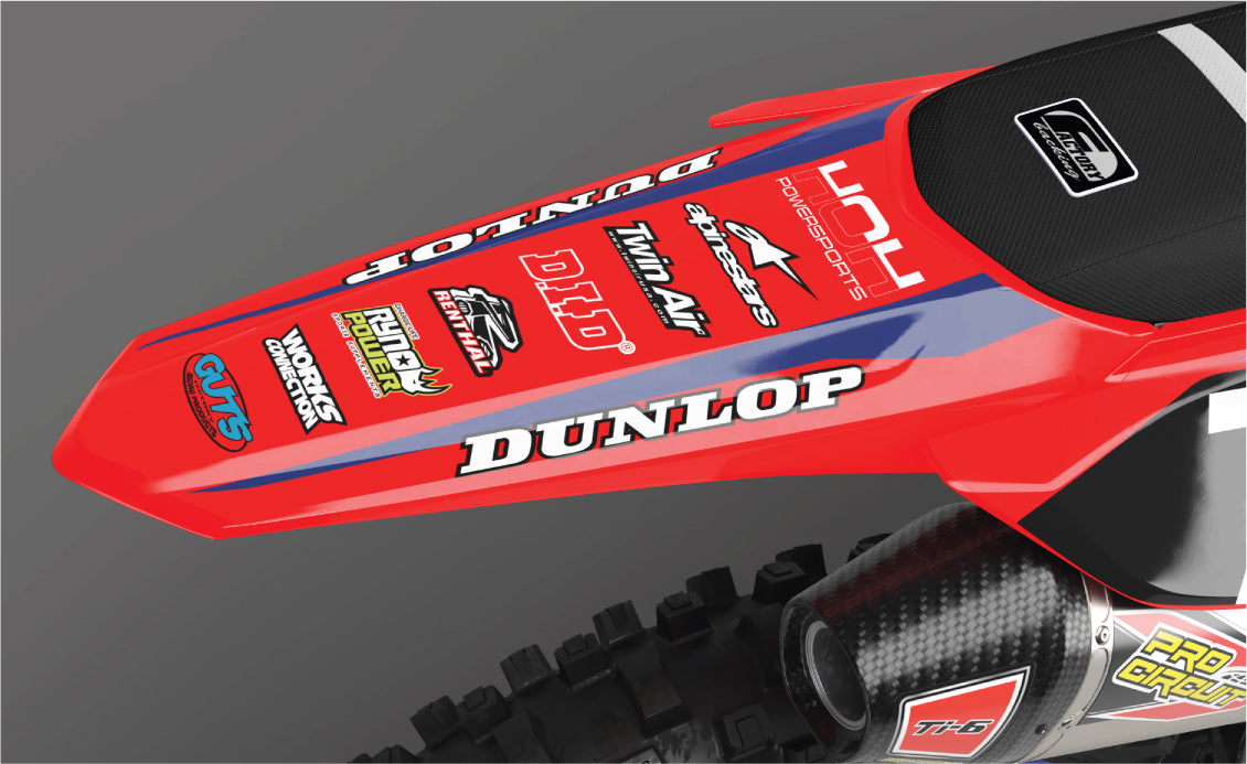 Vollständige Grafikkits werden auf Wunsch mit dem Logo Ihres Sponsors, Ihrer Nummer und Ihren Farben auf das beste Vinyl der Branche von Substance® gedruckt. Die meisten Modelle umfassen Grafiken für Abdeckungen, Frontspitze, hinteren Kotflügel, Seiten/Frontplatte, Schwinge und Gabelaufkleber.