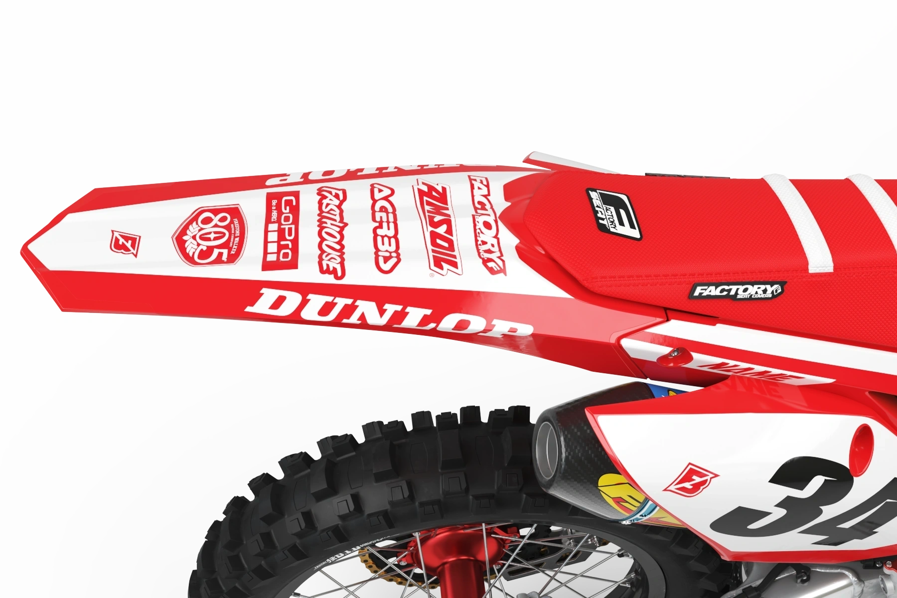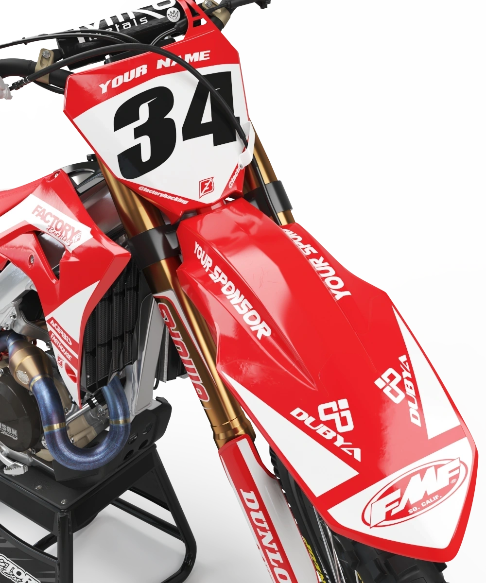 Vollständige Grafikkits werden auf Wunsch mit dem Logo Ihres Sponsors, Ihrer Nummer und Ihren Farben auf das beste Vinyl der Branche von Substance® gedruckt. Die meisten Modelle umfassen Grafiken für Abdeckungen, Frontspitze, hinteren Kotflügel, Seiten/Frontplatte, Schwinge und Gabelaufkleber.