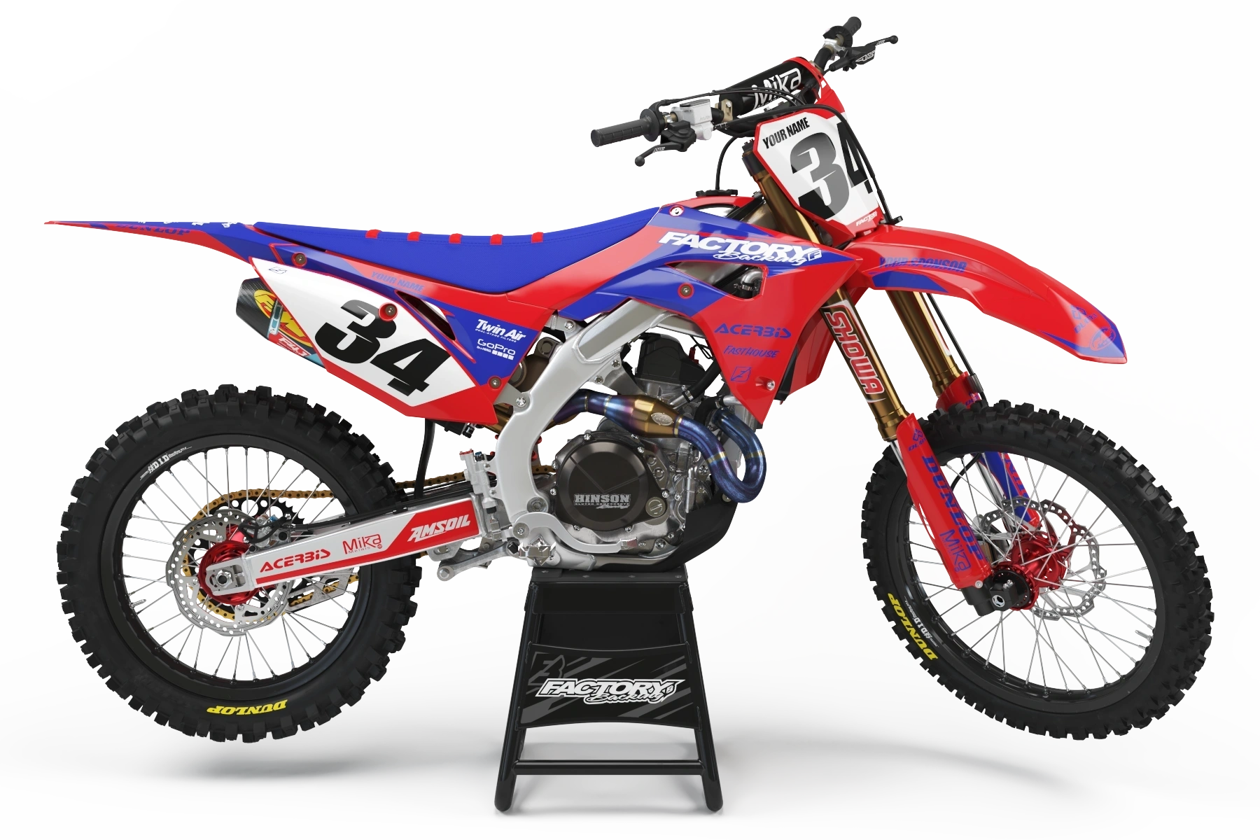 Vollständige Grafikkits werden auf Wunsch mit dem Logo Ihres Sponsors, Ihrer Nummer und Ihren Farben auf das beste Vinyl der Branche von Substance® gedruckt. Die meisten Modelle umfassen Grafiken für Abdeckungen, Frontspitze, hinteren Kotflügel, Seiten/Frontplatte, Schwinge und Gabelaufkleber.