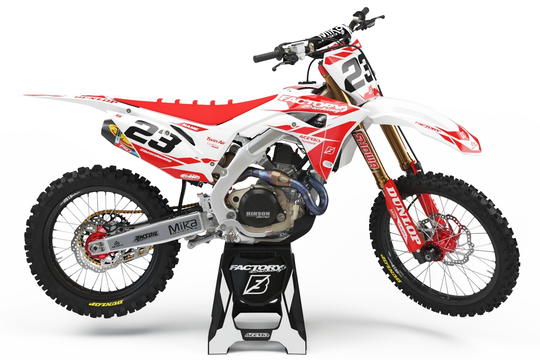 Vollständige Grafikkits werden auf Wunsch mit dem Logo Ihres Sponsors, Ihrer Nummer und Ihren Farben auf das beste Vinyl der Branche von Substance® gedruckt. Die meisten Modelle umfassen Grafiken für Abdeckungen, Frontspitze, hinteren Kotflügel, Seiten/Frontplatte, Schwinge und Gabelaufkleber.