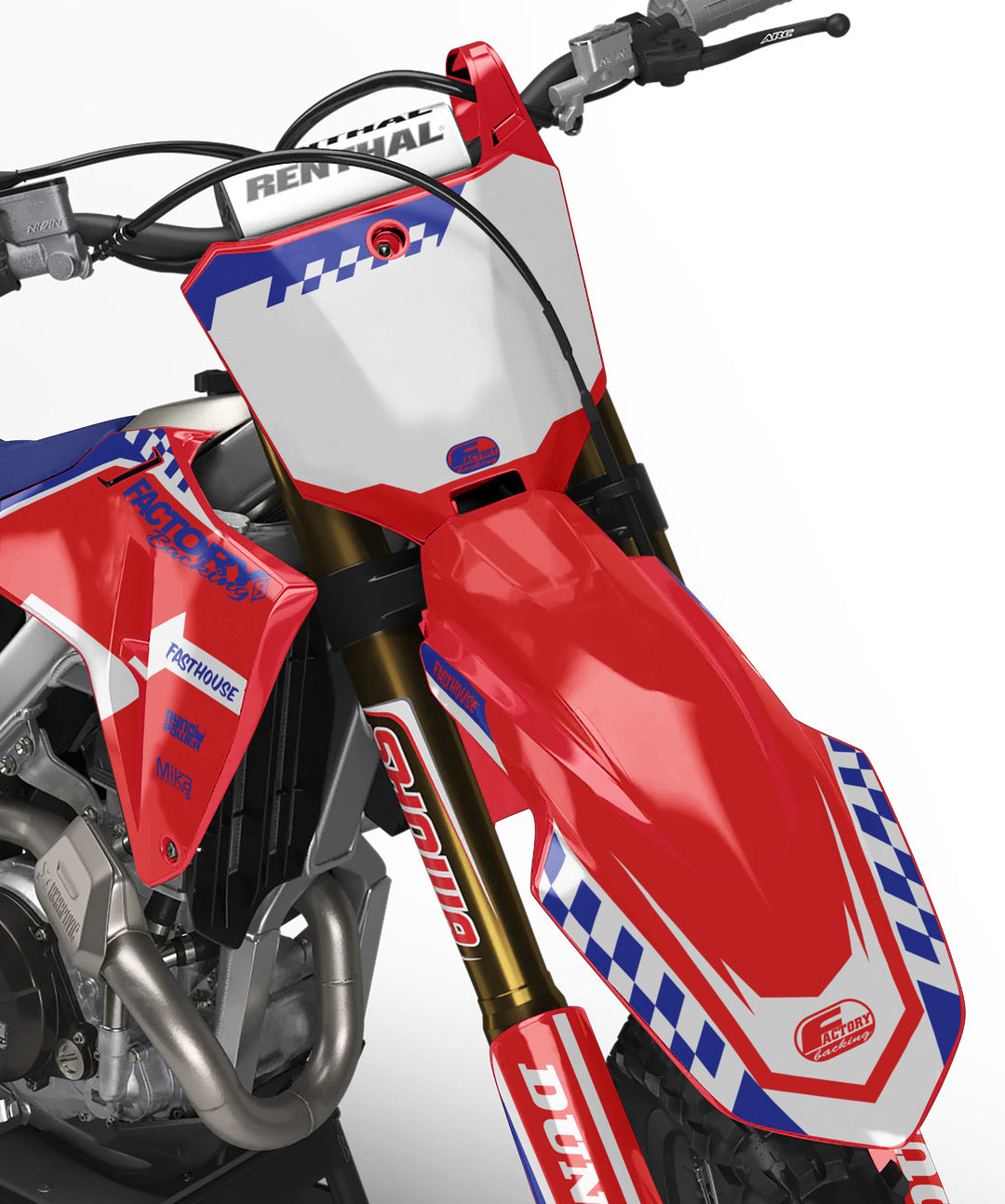 Vollständige Grafikkits werden auf Wunsch mit dem Logo Ihres Sponsors, Ihrer Nummer und Ihren Farben auf das beste Vinyl der Branche von Substance® gedruckt. Die meisten Modelle umfassen Grafiken für Abdeckungen, Frontspitze, hinteren Kotflügel, Seiten/Frontplatte, Schwinge und Gabelaufkleber.