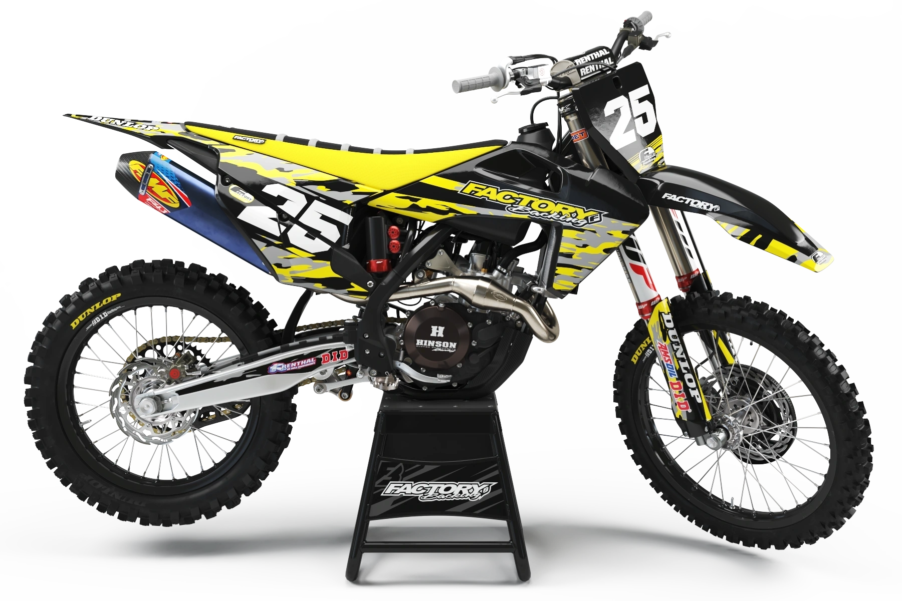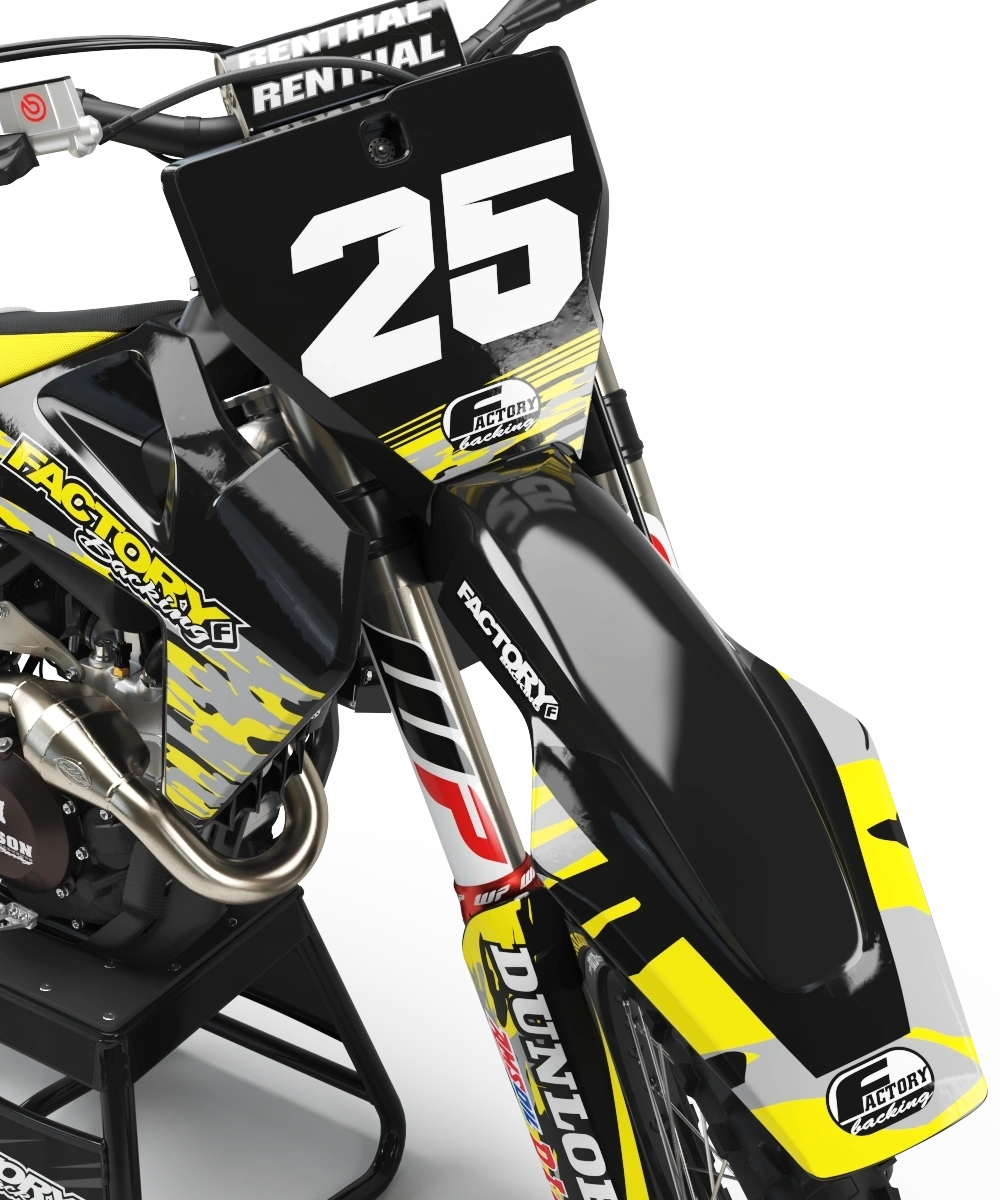 Vollständige Grafikkits werden auf Wunsch mit dem Logo Ihres Sponsors, Ihrer Nummer und Ihren Farben auf das beste Vinyl der Branche von Substance® gedruckt. Die meisten Modelle umfassen Grafiken für Abdeckungen, Frontspitze, hinteren Kotflügel, Seiten/Frontplatte, Schwinge und Gabelaufkleber.