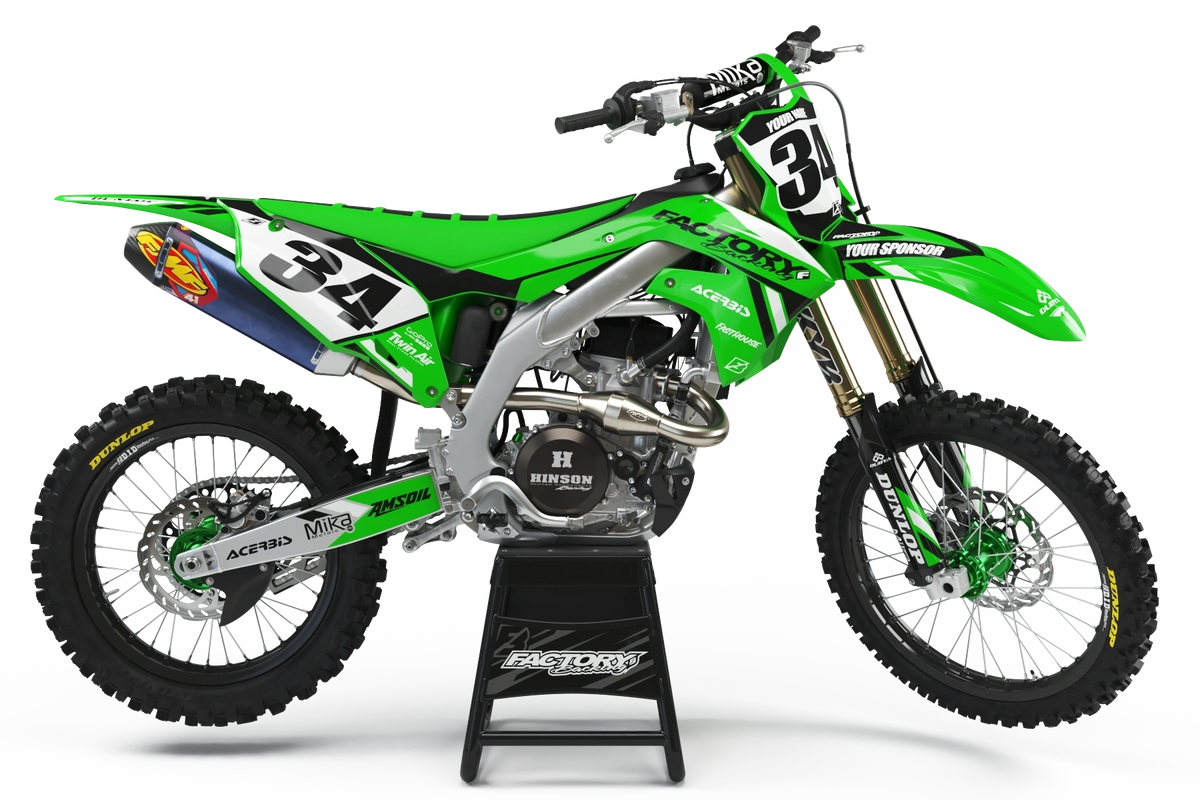 Vollständige Grafikkits werden auf Wunsch mit dem Logo Ihres Sponsors, Ihrer Nummer und Ihren Farben auf das beste Vinyl der Branche von Substance® gedruckt. Die meisten Modelle umfassen Grafiken für Abdeckungen, Frontspitze, hinteren Kotflügel, Seiten/Frontplatte, Schwinge und Gabelaufkleber.