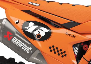 Vollständige Grafikkits werden auf Wunsch mit dem Logo Ihres Sponsors, Ihrer Nummer und Ihren Farben auf das beste Vinyl der Branche von Substance® gedruckt. Die meisten Modelle umfassen Grafiken für Abdeckungen, Frontspitze, hinteren Kotflügel, Seiten/Frontplatte, Schwinge und Gabelaufkleber.