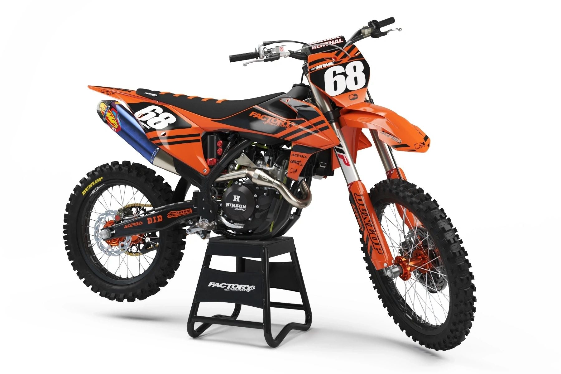 Vollständige Grafikkits werden auf Wunsch mit dem Logo Ihres Sponsors, Ihrer Nummer und Ihren Farben auf das beste Vinyl der Branche von Substance® gedruckt. Die meisten Modelle umfassen Grafiken für Abdeckungen, Frontspitze, hinteren Kotflügel, Seiten/Frontplatte, Schwinge und Gabelaufkleber.