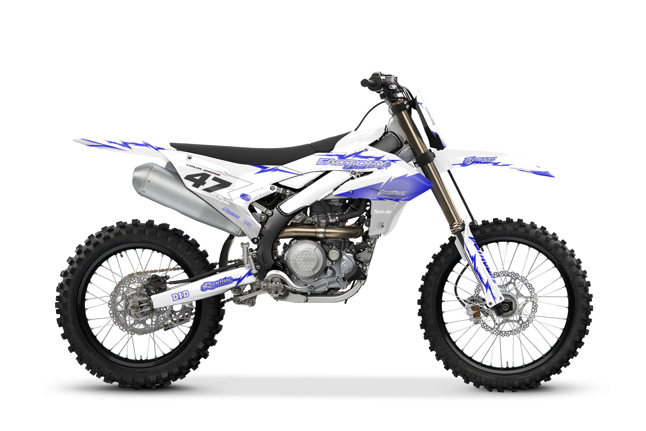 Vollständige Grafikkits werden auf Wunsch mit dem Logo Ihres Sponsors, Ihrer Nummer und Ihren Farben auf das beste Vinyl der Branche von Substance® gedruckt. Die meisten Modelle umfassen Grafiken für Abdeckungen, Frontspitze, hinteren Kotflügel, Seiten/Frontplatte, Schwinge und Gabelaufkleber.