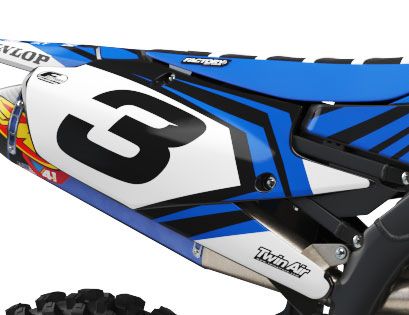 Vollständige Grafikkits werden auf Wunsch mit dem Logo Ihres Sponsors, Ihrer Nummer und Ihren Farben auf das beste Vinyl der Branche von Substance® gedruckt. Die meisten Modelle umfassen Grafiken für Abdeckungen, Frontspitze, hinteren Kotflügel, Seiten/Frontplatte, Schwinge und Gabelaufkleber.