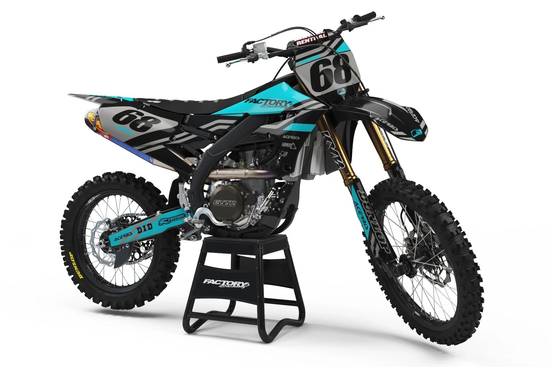 Vollständige Grafikkits werden auf Wunsch mit dem Logo Ihres Sponsors, Ihrer Nummer und Ihren Farben auf das beste Vinyl der Branche von Substance® gedruckt. Die meisten Modelle umfassen Grafiken für Abdeckungen, Frontspitze, hinteren Kotflügel, Seiten/Frontplatte, Schwinge und Gabelaufkleber.