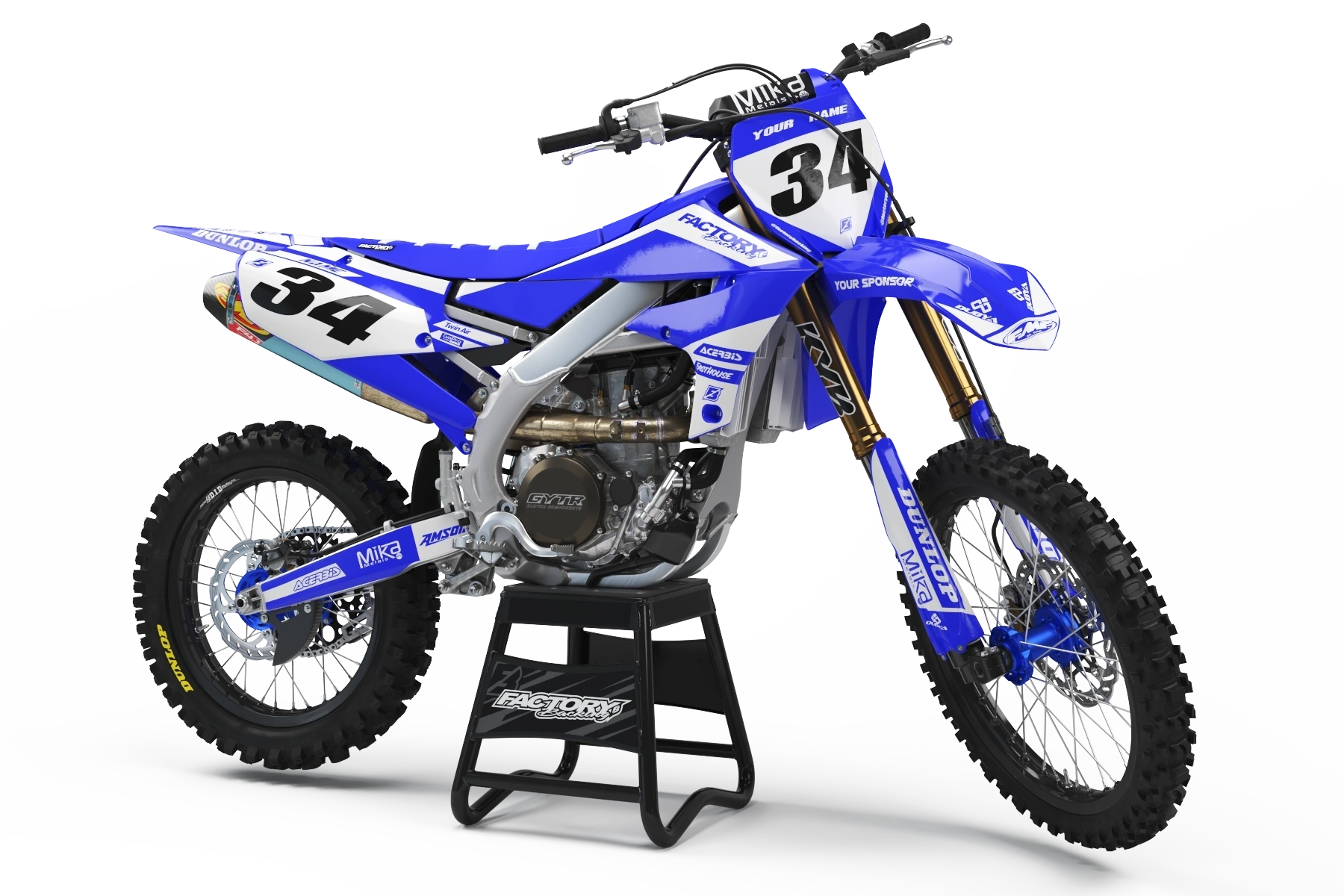 Vollständige Grafikkits werden auf Wunsch mit dem Logo Ihres Sponsors, Ihrer Nummer und Ihren Farben auf das beste Vinyl der Branche von Substance® gedruckt. Die meisten Modelle umfassen Grafiken für Abdeckungen, Frontspitze, hinteren Kotflügel, Seiten/Frontplatte, Schwinge und Gabelaufkleber.