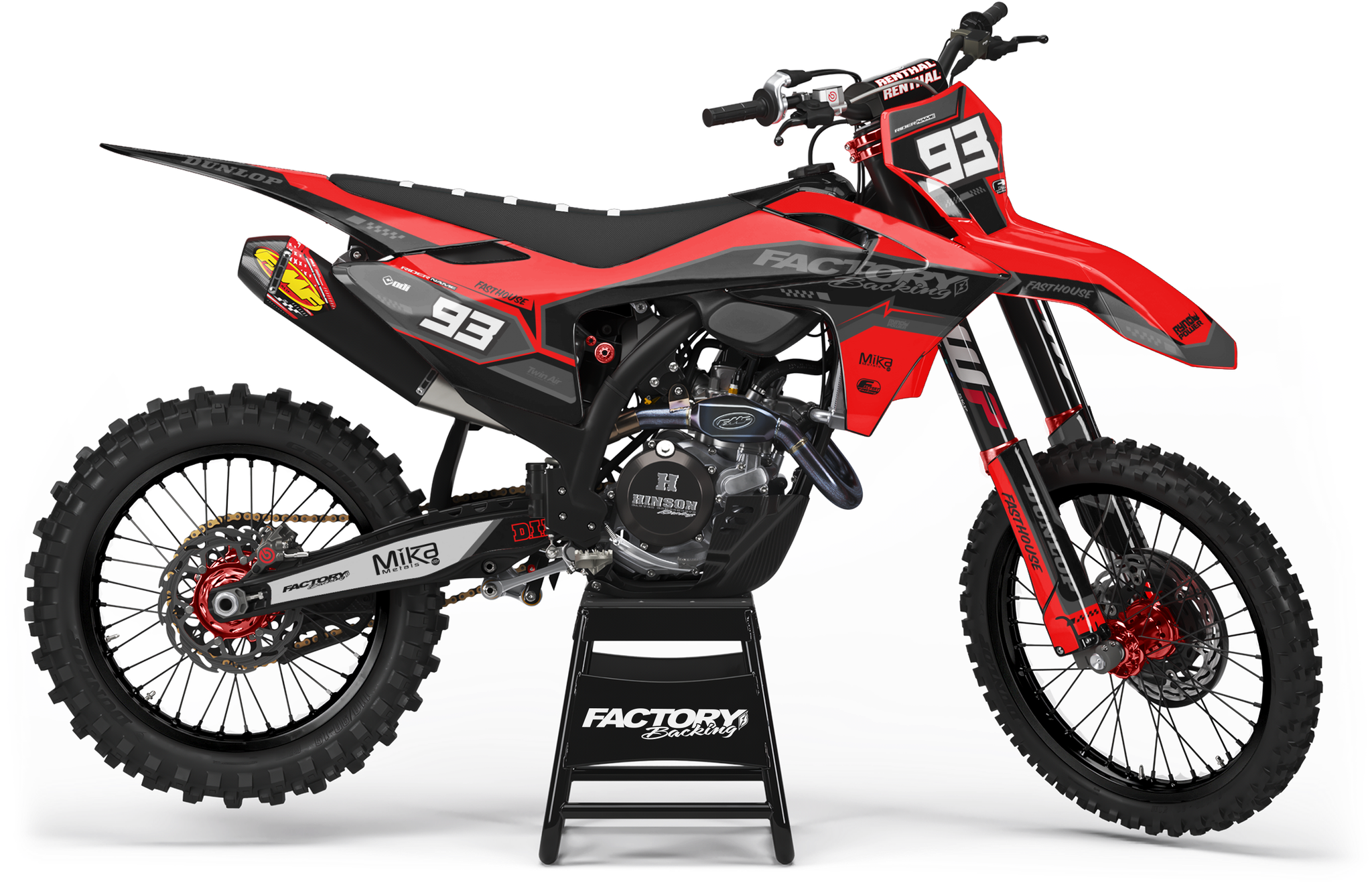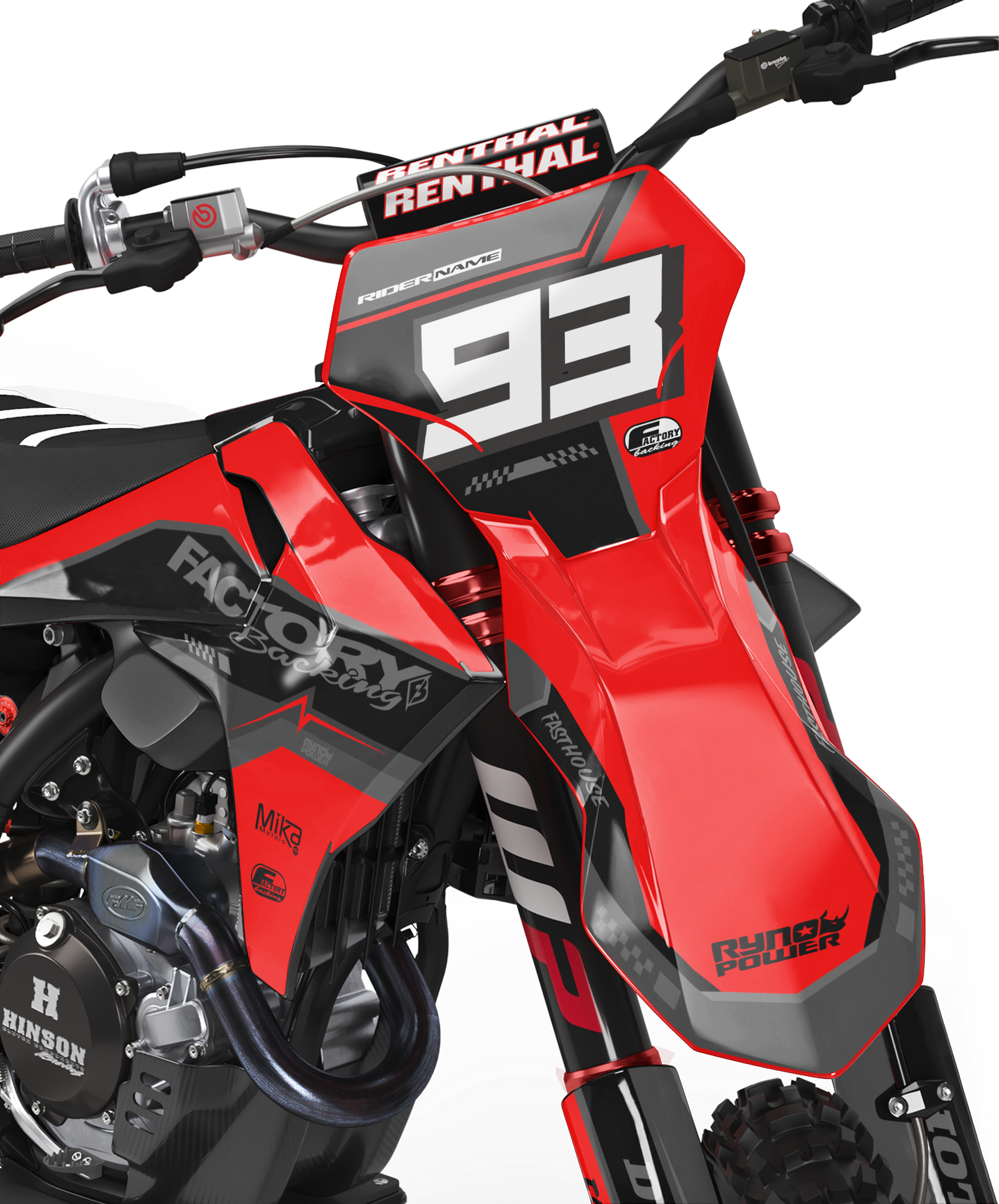 Les kits graphiques complets sont personnalisés avec le logo de votre sponsor si vous le souhaitez, votre numéro et vos couleurs imprimés sur le meilleur vinyle de l'industrie par Substance®. La plupart des modèles incluent des graphiques pour les carénages, la pointe avant, le garde-boue arrière, la plaque latérale/avant, le bras oscillant et les autocollants de fourche.