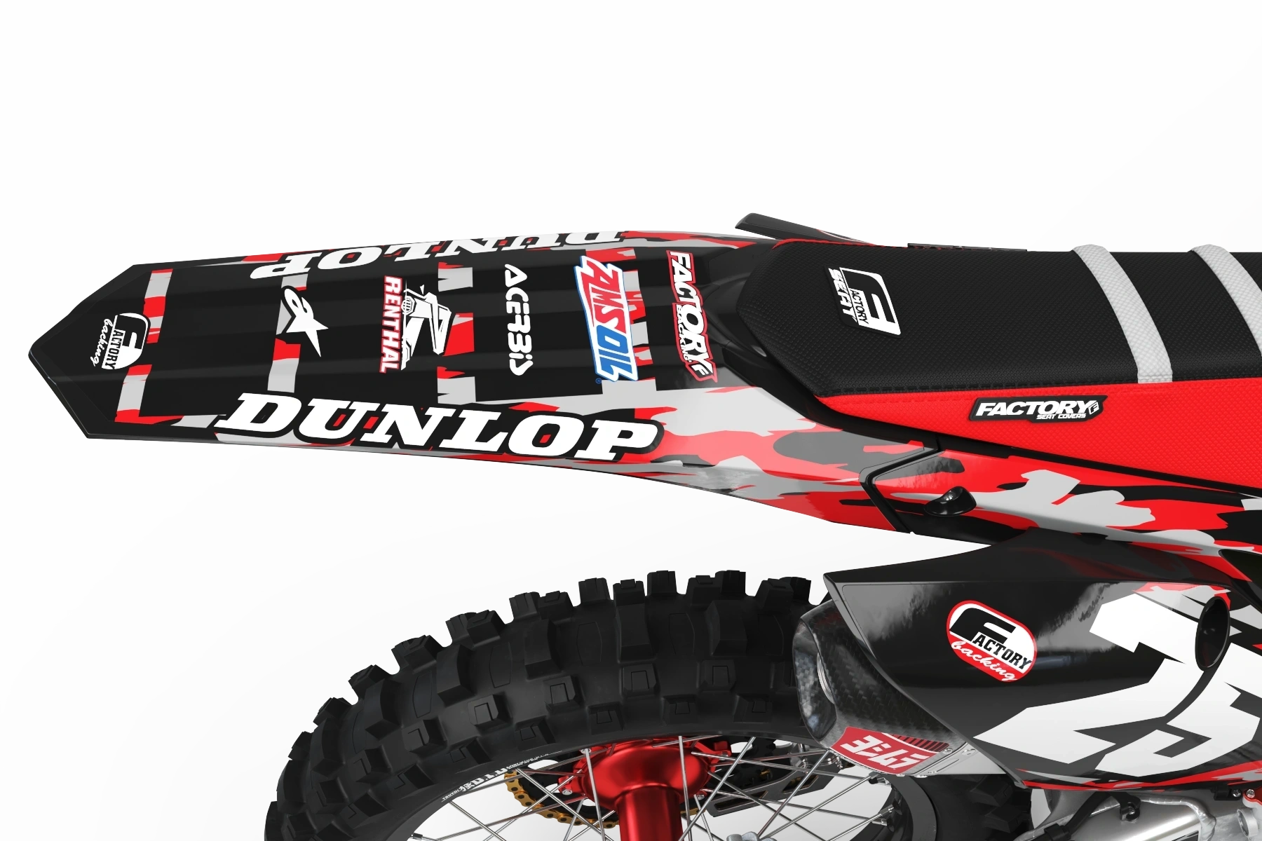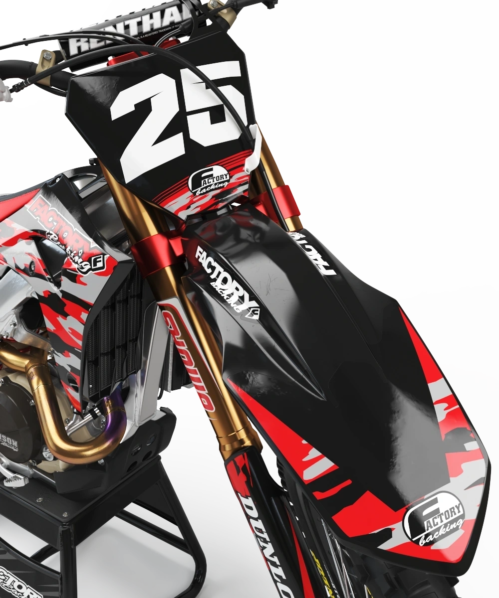 Les kits graphiques complets sont personnalisés avec le logo de votre sponsor si vous le souhaitez, votre numéro et vos couleurs imprimés sur le meilleur vinyle de l'industrie par Substance®. La plupart des modèles incluent des graphiques pour les carénages, la pointe avant, le garde-boue arrière, la plaque latérale/avant, le bras oscillant et les autocollants de fourche.
