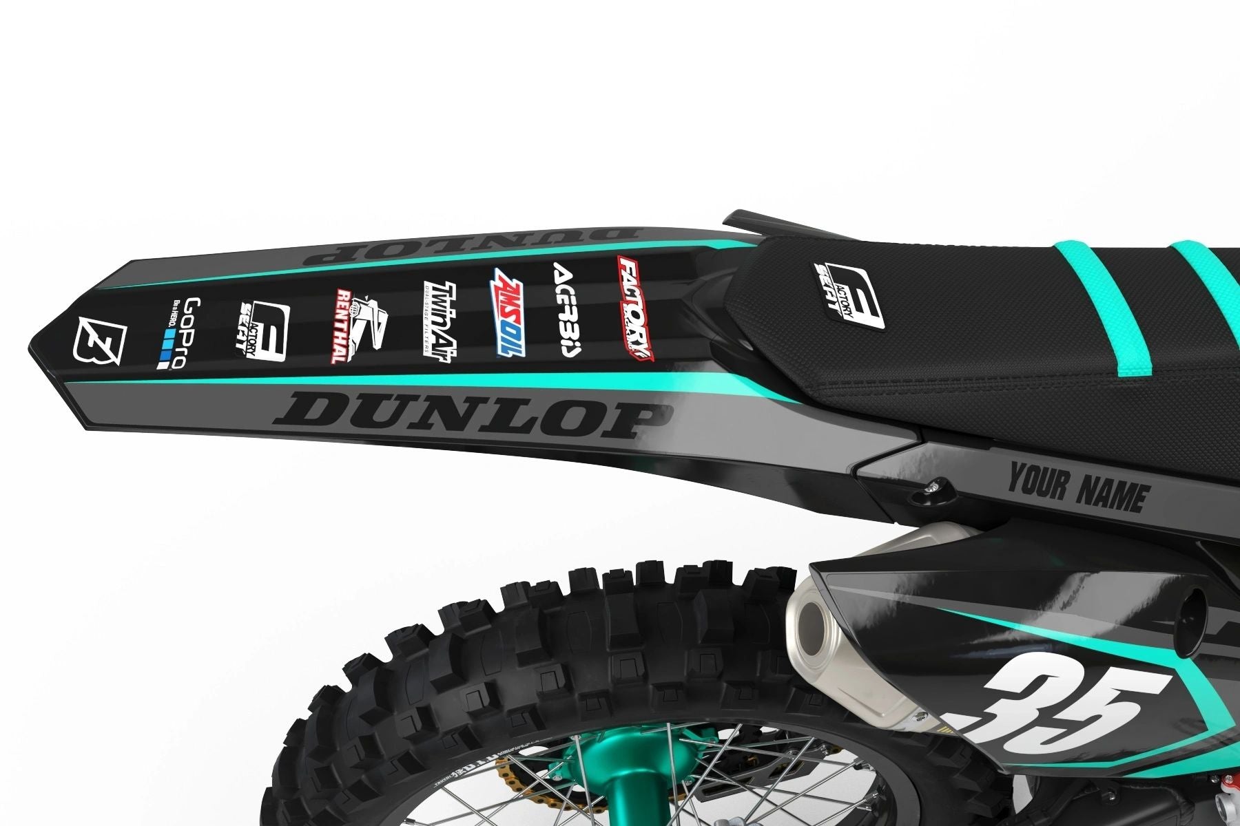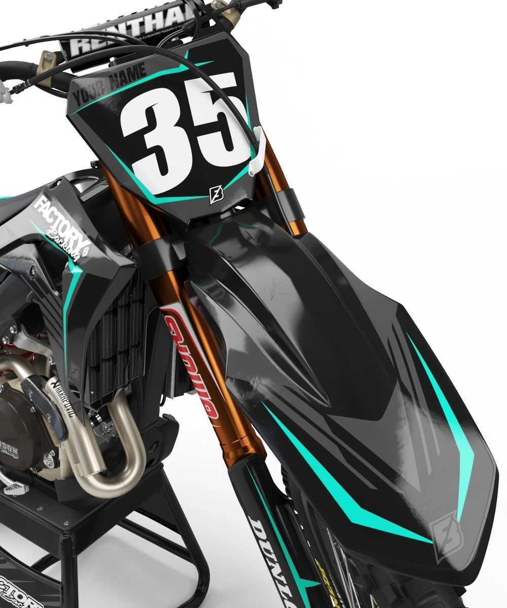 Les kits graphiques complets sont personnalisés avec le logo de votre sponsor si vous le souhaitez, votre numéro et vos couleurs imprimés sur le meilleur vinyle de l'industrie par Substance®. La plupart des modèles incluent des graphiques pour les carénages, la pointe avant, le garde-boue arrière, la plaque latérale/avant, le bras oscillant et les autocollants de fourche.