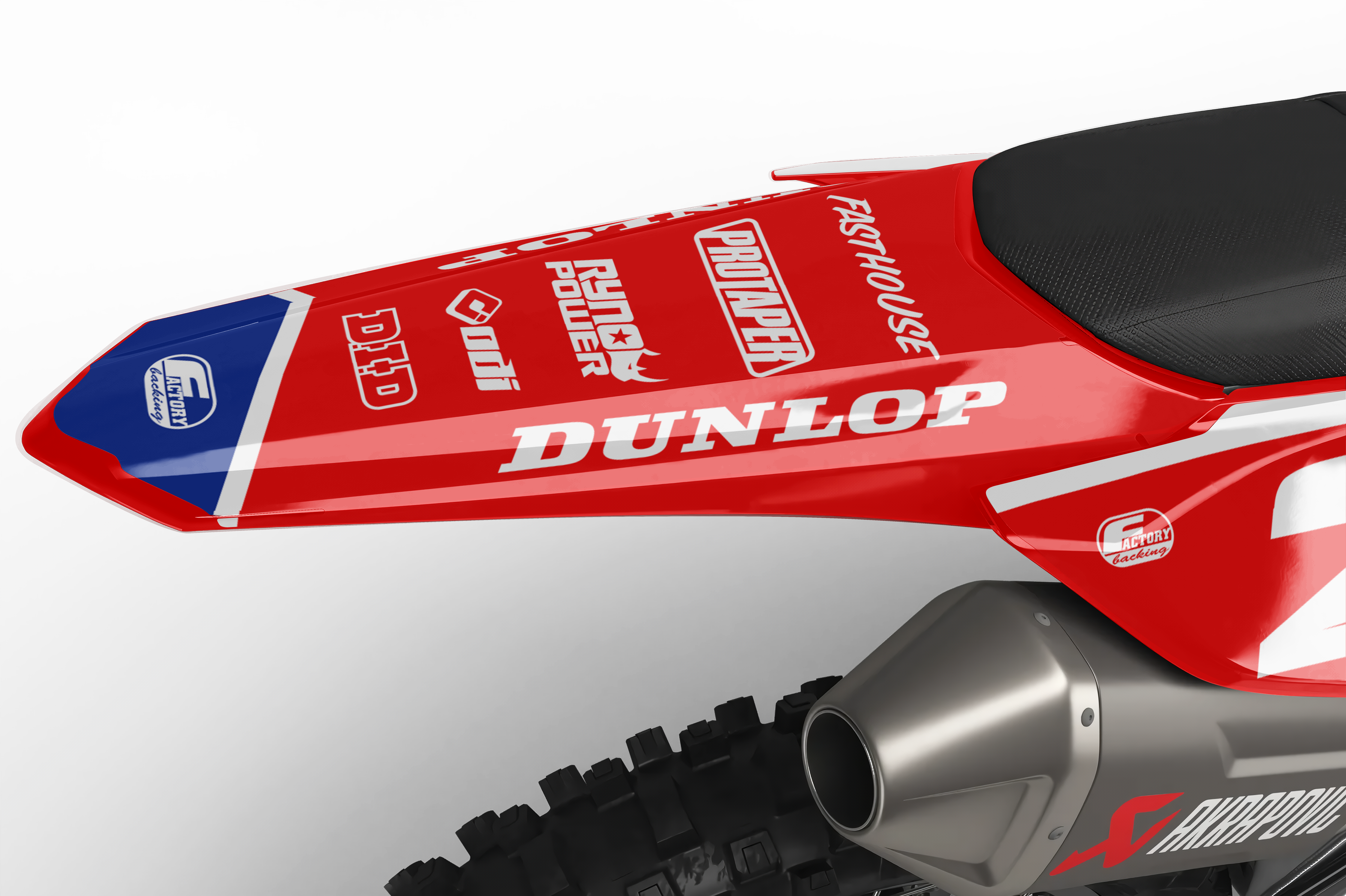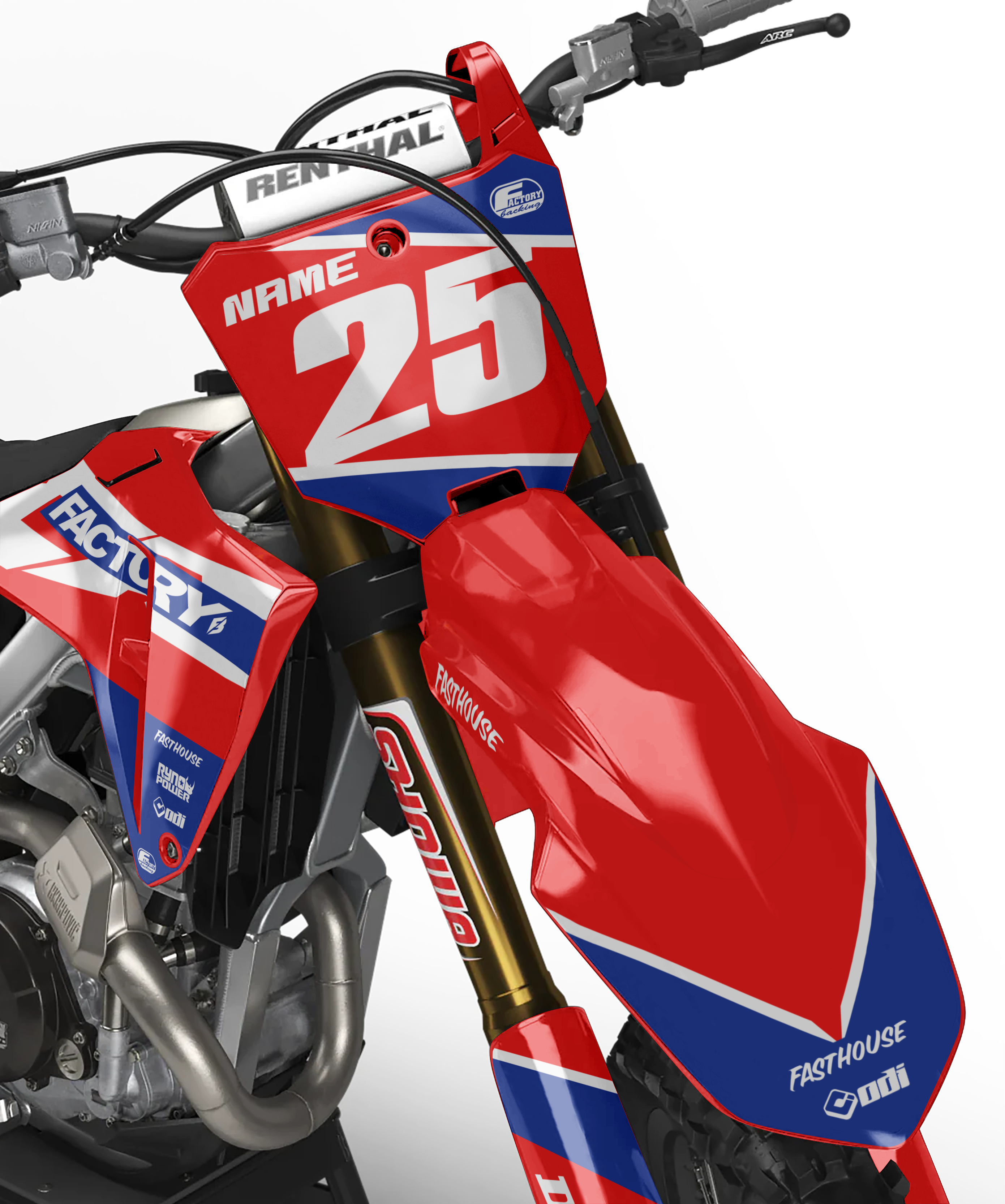 Les kits graphiques complets sont personnalisés avec le logo de votre sponsor si vous le souhaitez, votre numéro et vos couleurs imprimés sur le meilleur vinyle de l'industrie par Substance®. La plupart des modèles incluent des graphiques pour les carénages, la pointe avant, le garde-boue arrière, la plaque latérale/avant, le bras oscillant et les autocollants de fourche.