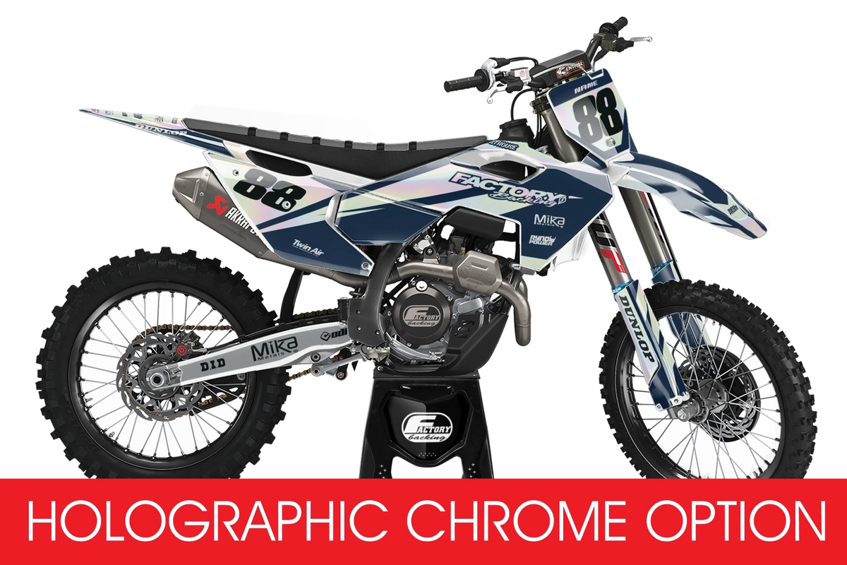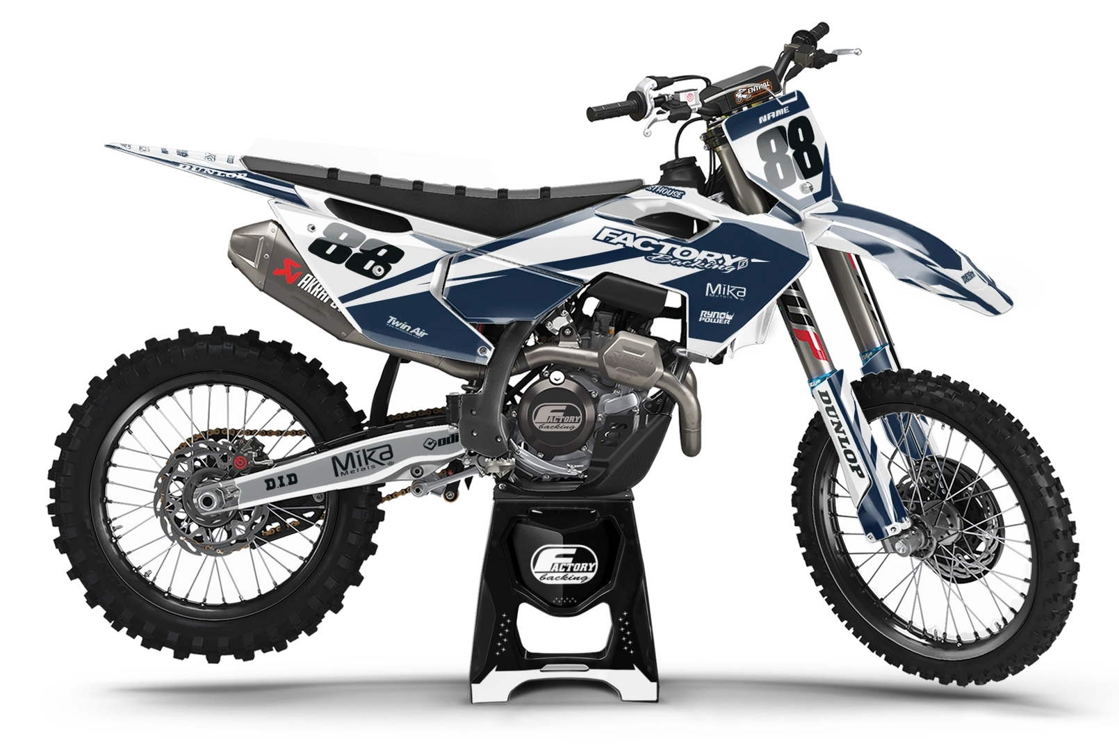 Les kits graphiques complets sont personnalisés avec le logo de votre sponsor si vous le souhaitez, votre numéro et vos couleurs imprimés sur le meilleur vinyle de l'industrie par Substance®. La plupart des modèles incluent des graphiques pour les carénages, la pointe avant, le garde-boue arrière, la plaque latérale/avant, le bras oscillant et les autocollants de fourche.