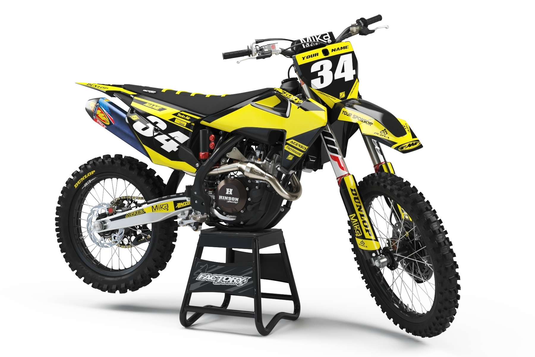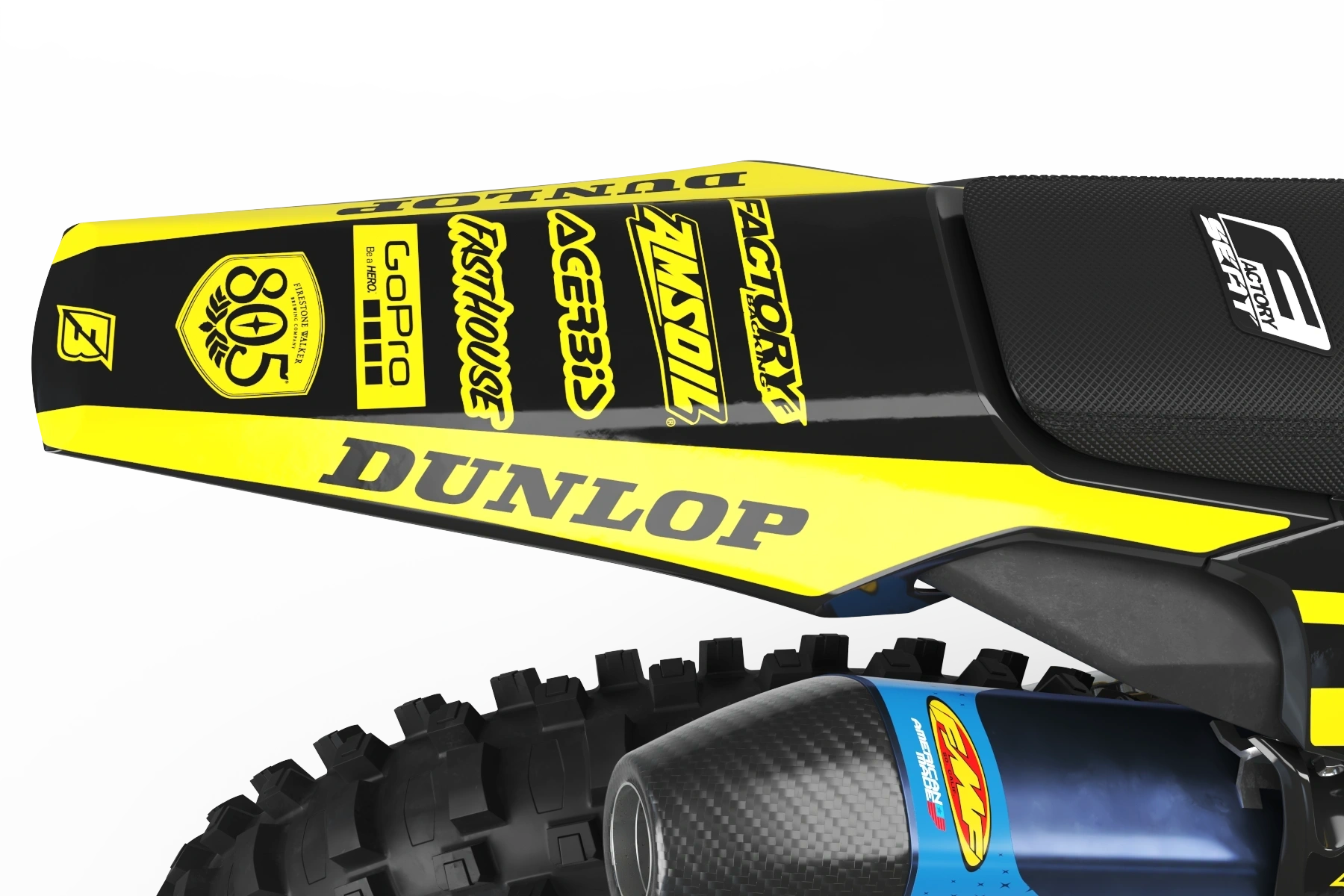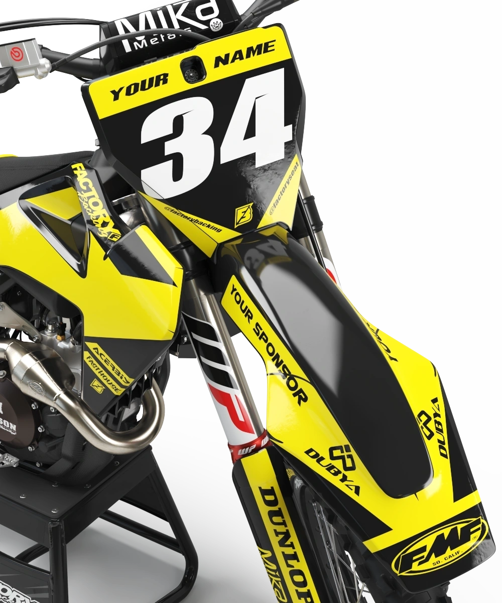 Les kits graphiques complets sont personnalisés avec le logo de votre sponsor si vous le souhaitez, votre numéro et vos couleurs imprimés sur le meilleur vinyle de l'industrie par Substance®. La plupart des modèles incluent des graphiques pour les carénages, la pointe avant, le garde-boue arrière, la plaque latérale/avant, le bras oscillant et les autocollants de fourche.