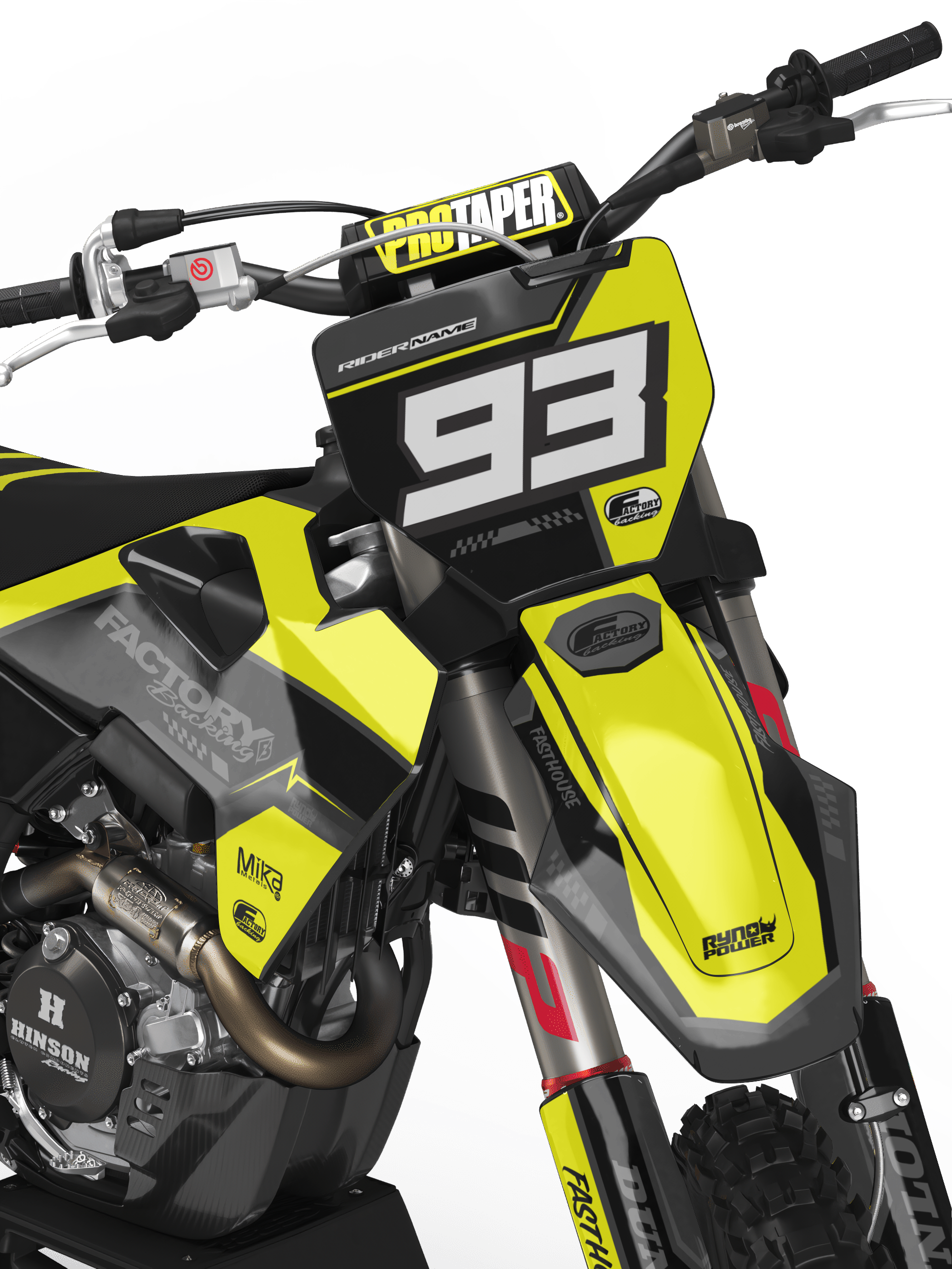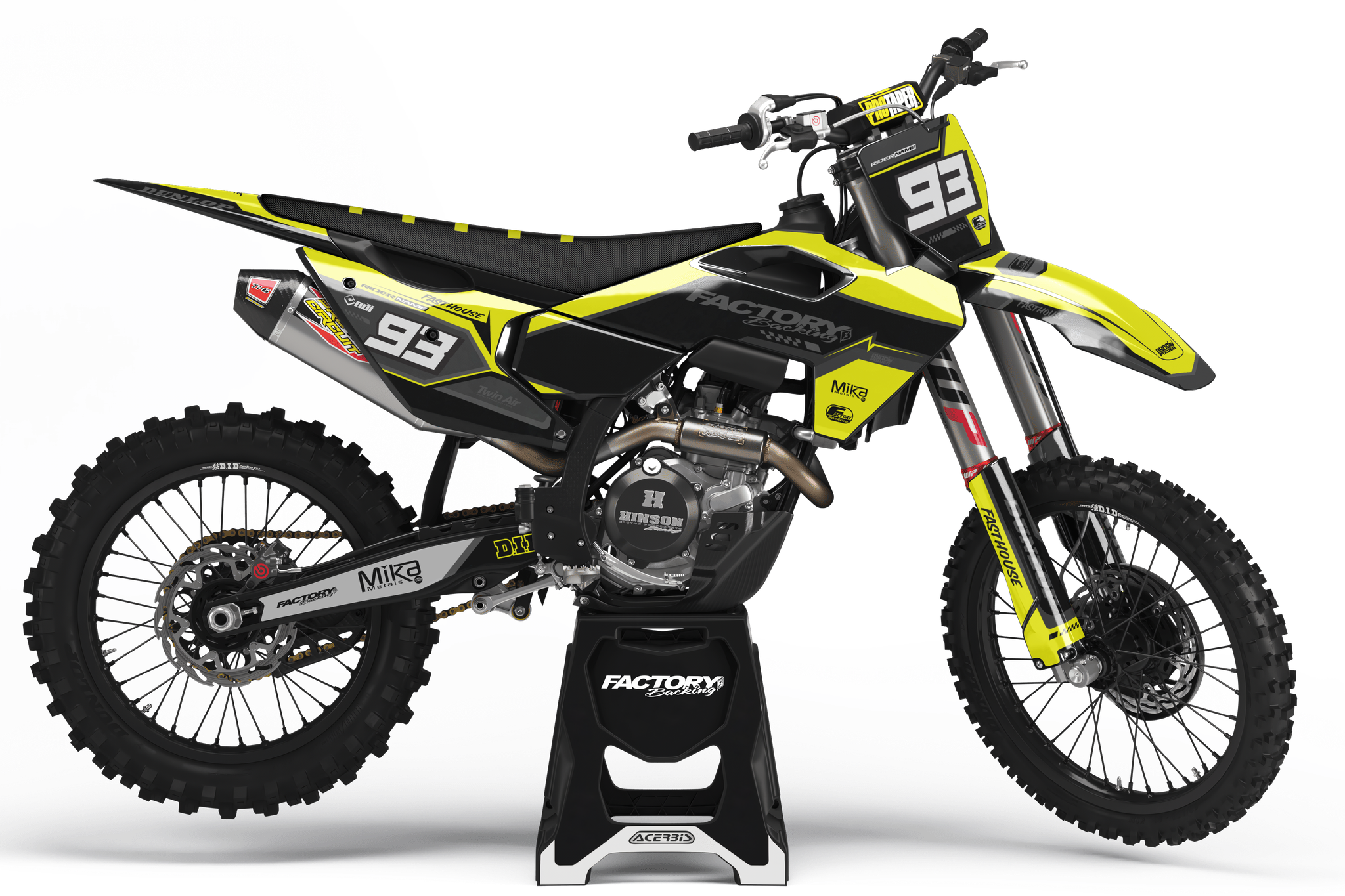 Les kits graphiques complets sont personnalisés avec le logo de votre sponsor si vous le souhaitez, votre numéro et vos couleurs imprimés sur le meilleur vinyle de l'industrie par Substance®. La plupart des modèles incluent des graphiques pour les carénages, la pointe avant, le garde-boue arrière, la plaque latérale/avant, le bras oscillant et les autocollants de fourche.