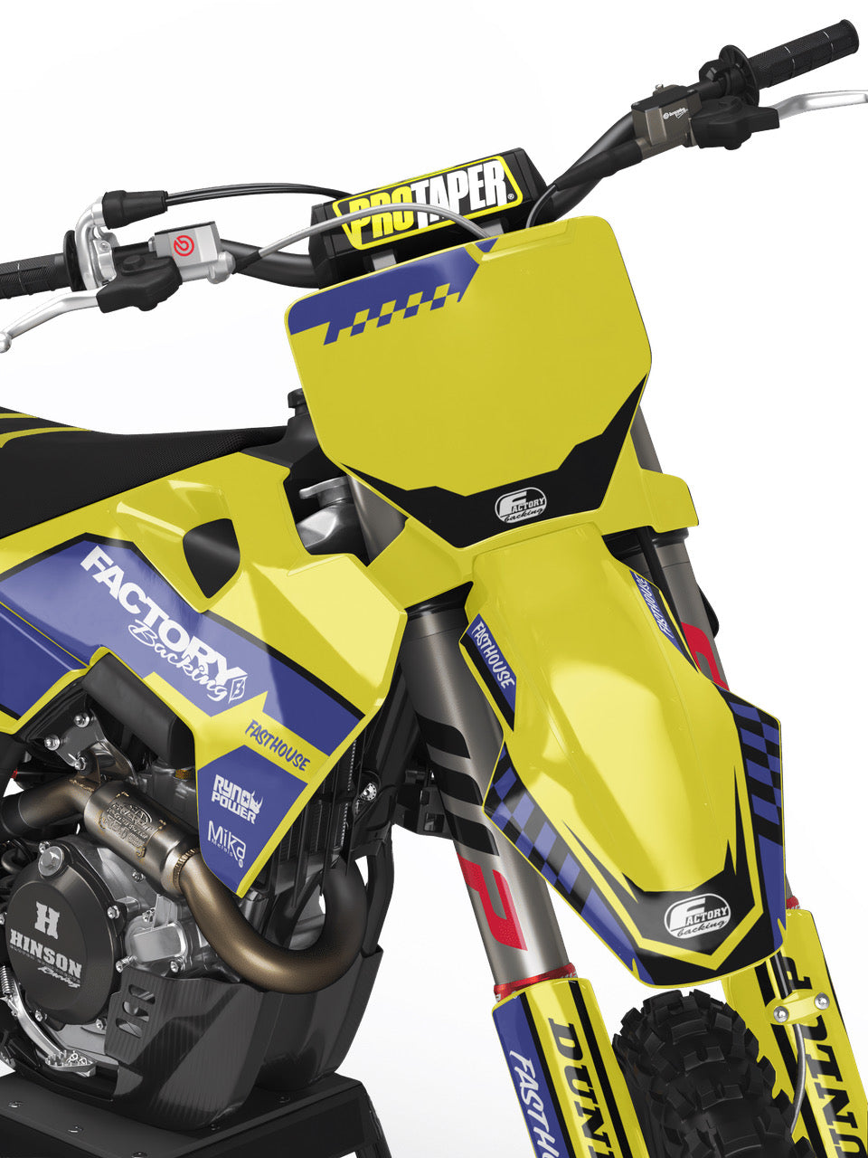 Les kits graphiques complets sont personnalisés avec le logo de votre sponsor si vous le souhaitez, votre numéro et vos couleurs imprimés sur le meilleur vinyle de l'industrie par Substance®. La plupart des modèles incluent des graphiques pour les carénages, la pointe avant, le garde-boue arrière, la plaque latérale/avant, le bras oscillant et les autocollants de fourche.