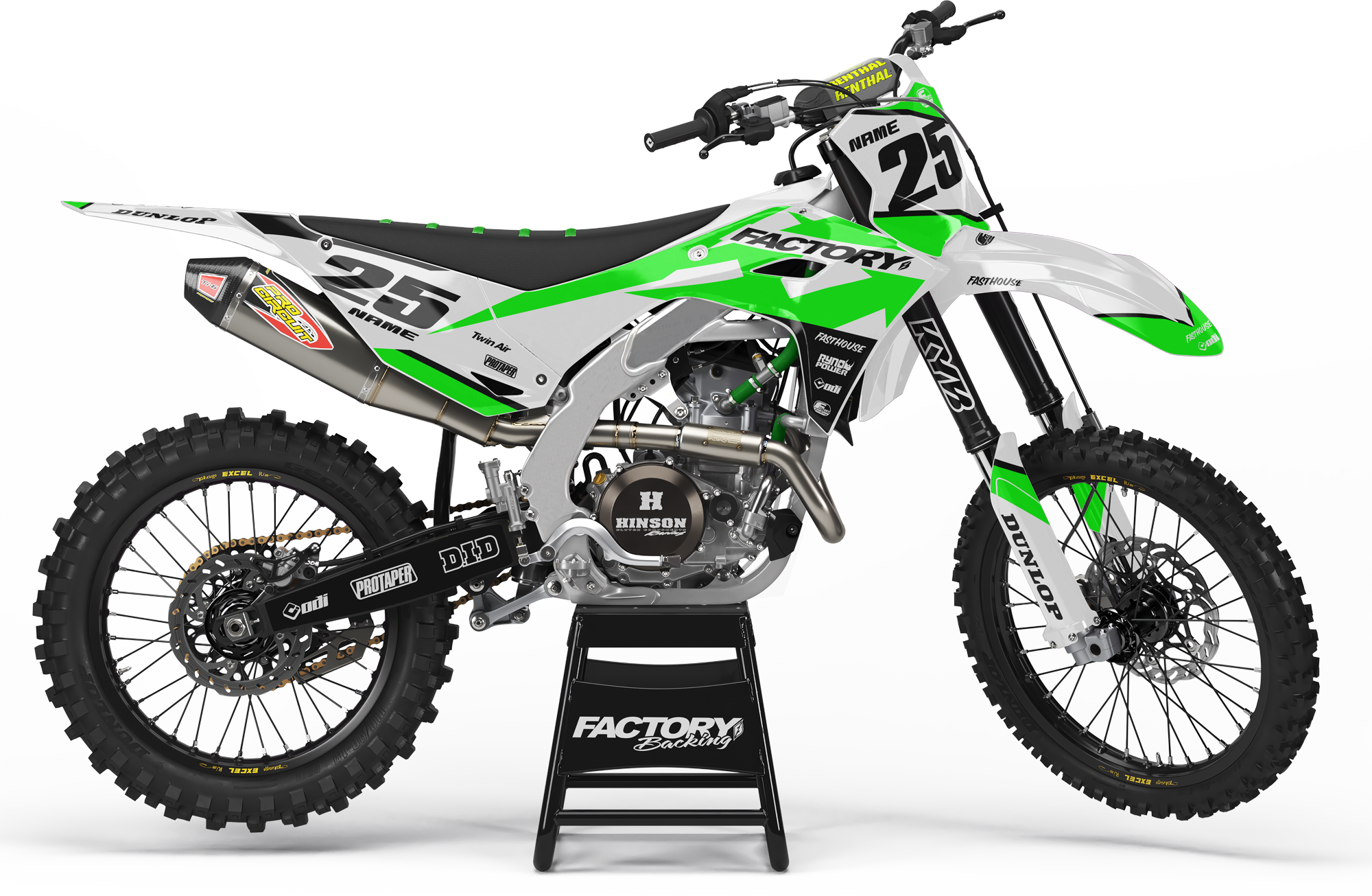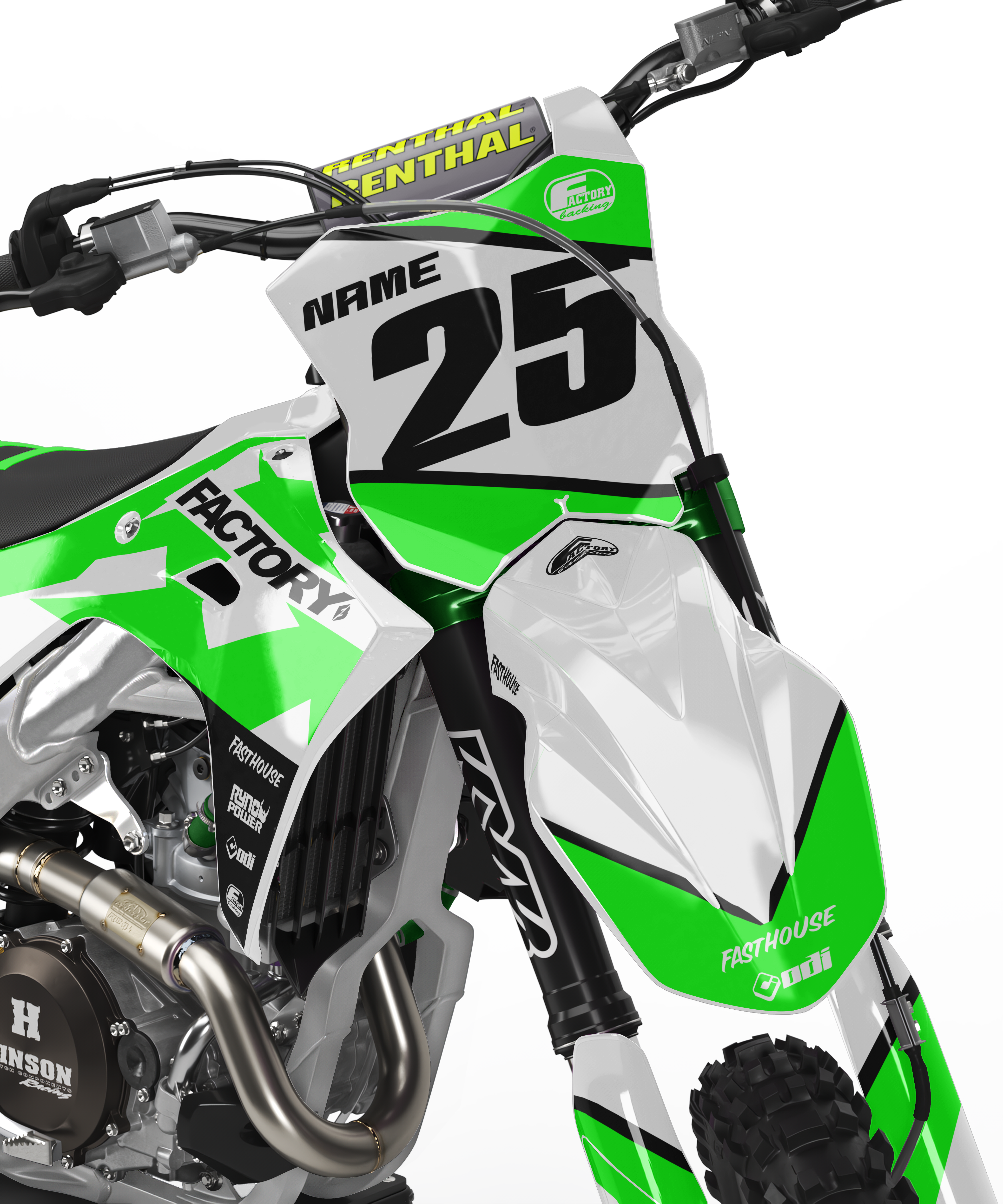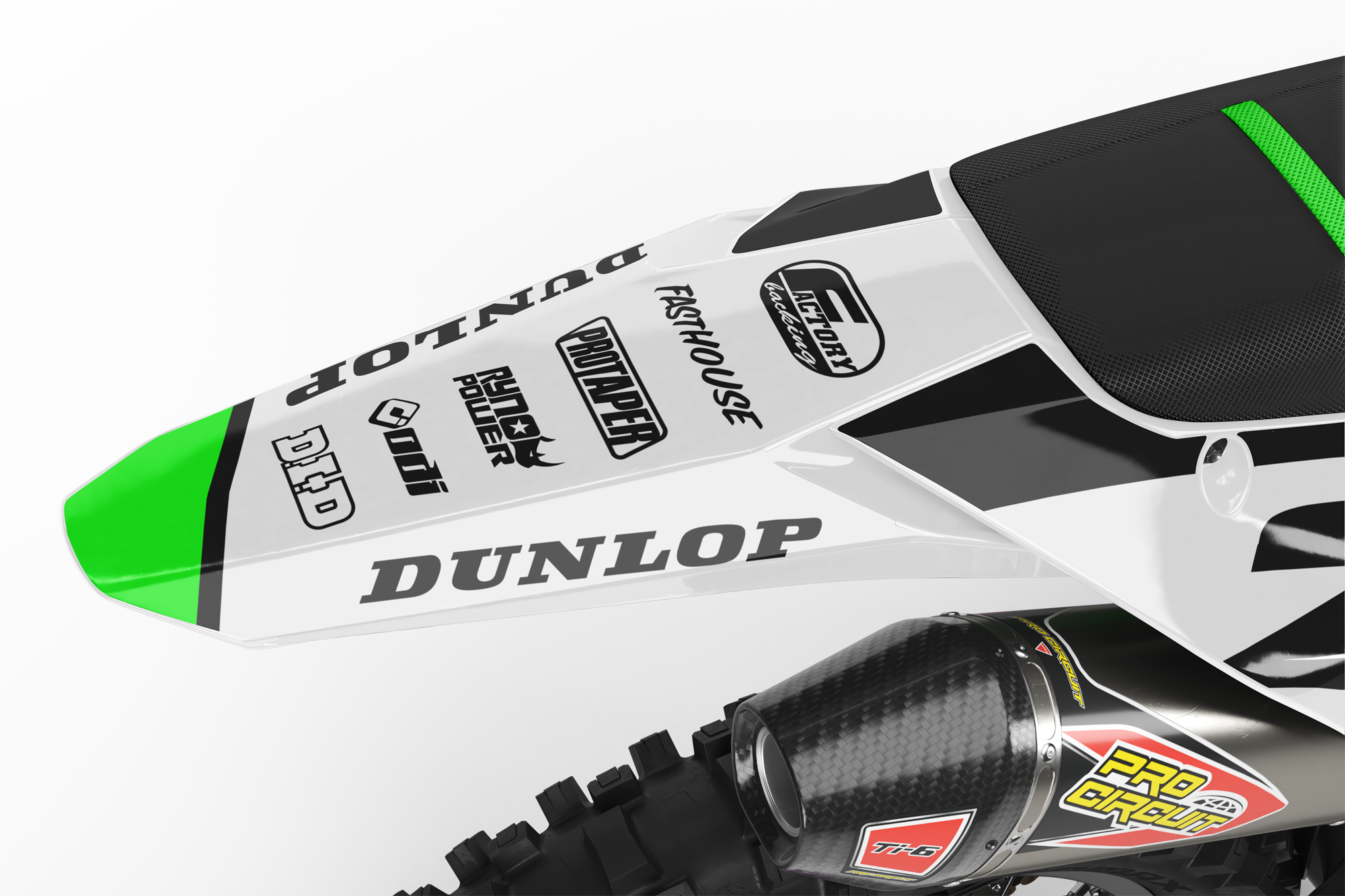 Les kits graphiques complets sont personnalisés avec le logo de votre sponsor si vous le souhaitez, votre numéro et vos couleurs imprimés sur le meilleur vinyle de l'industrie par Substance®. La plupart des modèles incluent des graphiques pour les carénages, la pointe avant, le garde-boue arrière, la plaque latérale/avant, le bras oscillant et les autocollants de fourche.
