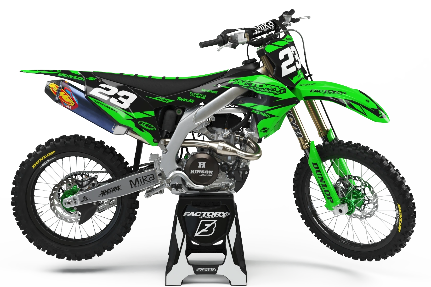 Les kits graphiques complets sont personnalisés avec le logo de votre sponsor si vous le souhaitez, votre numéro et vos couleurs imprimés sur le meilleur vinyle de l'industrie par Substance®. La plupart des modèles incluent des graphiques pour les carénages, la pointe avant, le garde-boue arrière, la plaque latérale/avant, le bras oscillant et les autocollants de fourche.