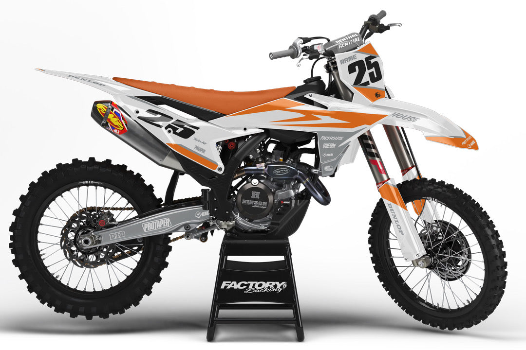 Les kits graphiques complets sont personnalisés avec le logo de votre sponsor si vous le souhaitez, votre numéro et vos couleurs imprimés sur le meilleur vinyle de l'industrie par Substance®. La plupart des modèles incluent des graphiques pour les carénages, la pointe avant, le garde-boue arrière, la plaque latérale/avant, le bras oscillant et les autocollants de fourche.