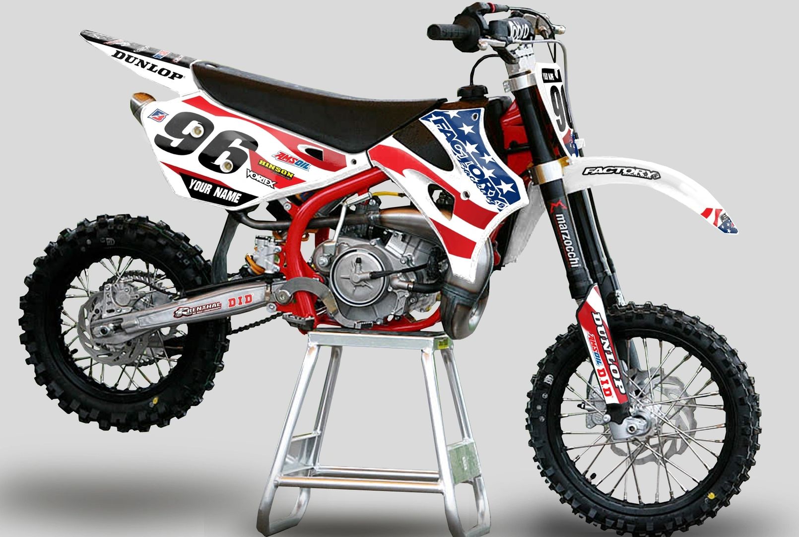 Full  graphic kits come custom with your sponsors logo if desired, your number and colors printed on the industry's best vinyl by Substance®. Most models include graphics for shrouds, front tip, rear fender,  sides/front plate, swing arm, and fork decals.