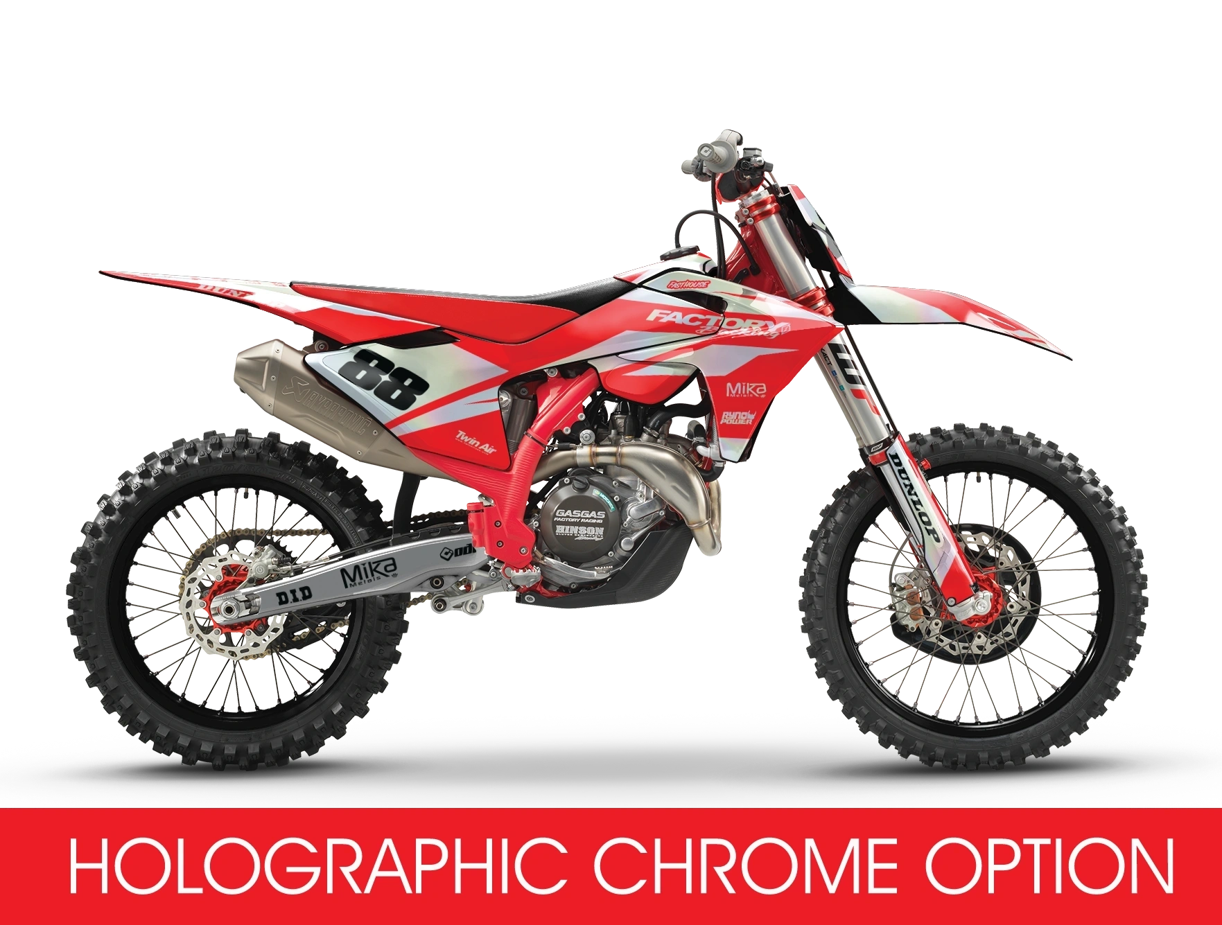 Full  graphic kits come custom with your sponsors logo if desired, your number and colors printed on the industry's best vinyl by Substance®. Most models include graphics for shrouds, front tip, rear fender,  sides/front plate, swing arm, and fork decals.