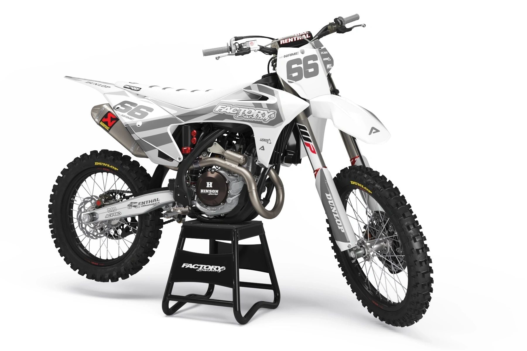 Full  graphic kits come custom with your sponsors logo if desired, your number and colors printed on the industry's best vinyl by Substance®. Most models include graphics for shrouds, front tip, rear fender,  sides/front plate, swing arm, and fork decals.