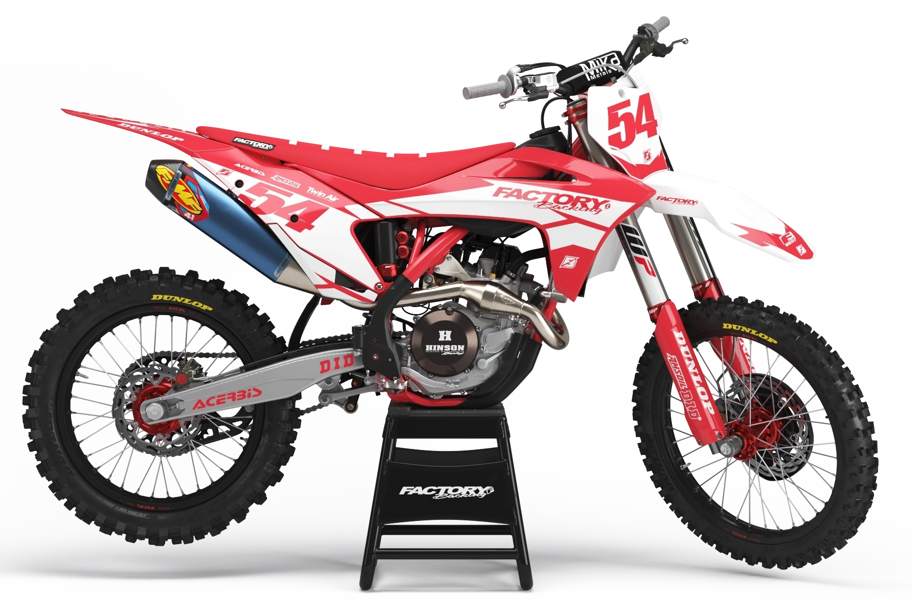 Full  graphic kits come custom with your sponsors logo if desired, your number and colors printed on the industry's best vinyl by Substance®. Most models include graphics for shrouds, front tip, rear fender,  sides/front plate, swing arm, and fork decals.