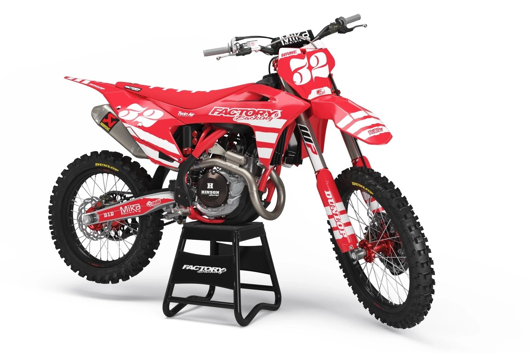 Full  graphic kits come custom with your sponsors logo if desired, your number and colors printed on the industry's best vinyl by Substance®. Most models include graphics for shrouds, front tip, rear fender,  sides/front plate, swing arm, and fork decals.