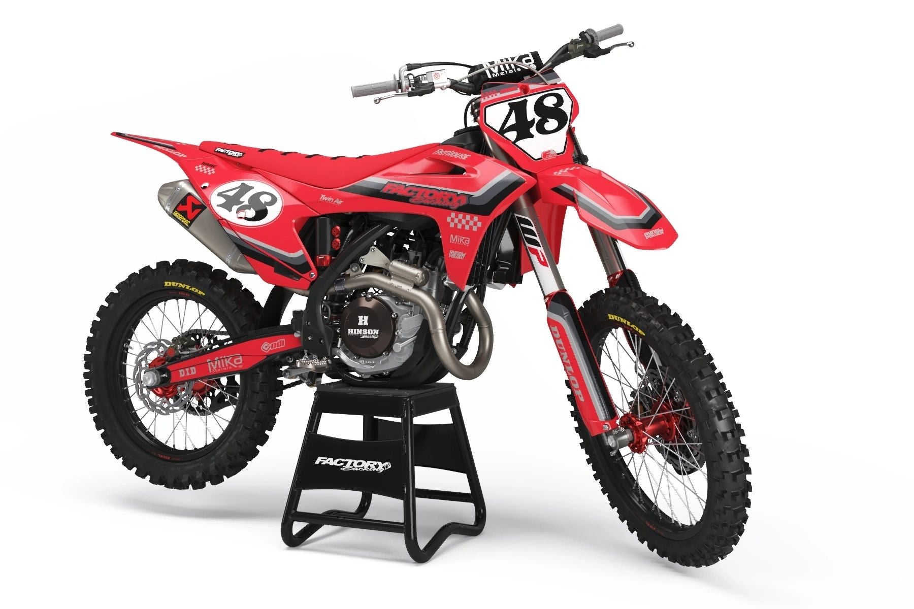 Full  graphic kits come custom with your sponsors logo if desired, your number and colors printed on the industry's best vinyl by Substance®. Most models include graphics for shrouds, front tip, rear fender,  sides/front plate, swing arm, and fork decals.