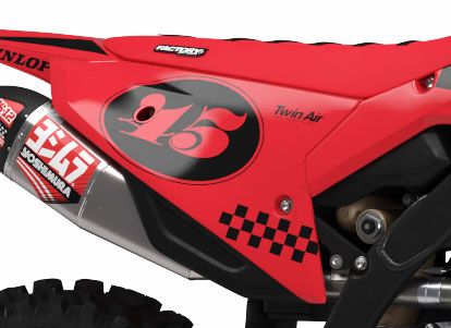 Full graphic kits come custom with your sponsors logo if desired, your number and colors printed on the industry's best vinyl by Substance®. Most models include graphics for shrouds, front tip, rear fender, sides/front plate, swing arm, and fork decals.