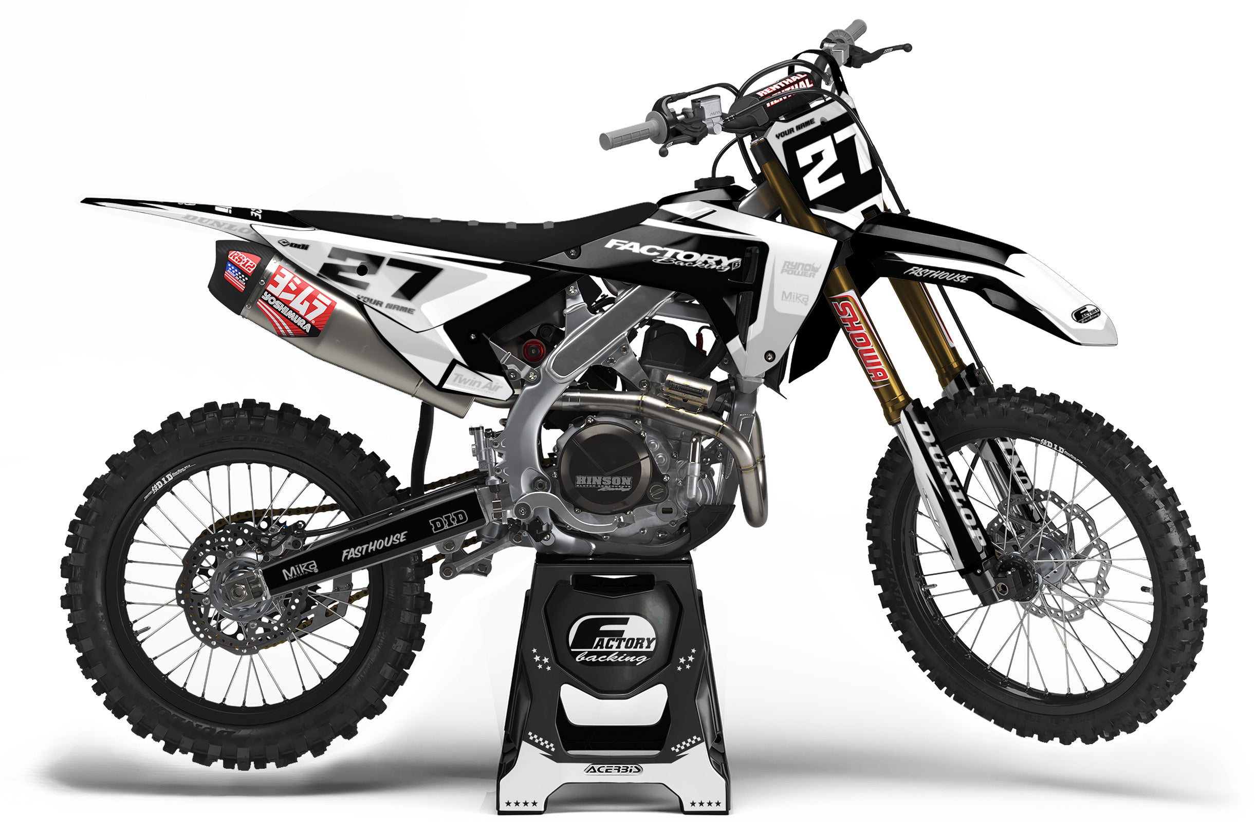 Full graphic kits come custom with your sponsors logo if desired, your number and colors printed on the industry's best vinyl by Substance®. Most models include graphics for shrouds, front tip, rear fender, sides/front plate, swing arm, and fork decals.
