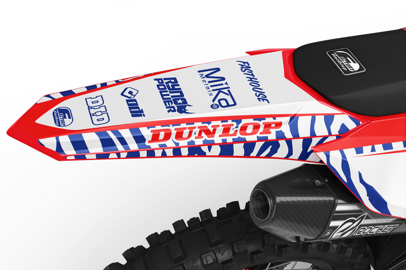 Full  graphic kits come custom with your sponsors logo if desired, your number and colors printed on the industry's best vinyl by Substance®. Most models include graphics for shrouds, front tip, rear fender,  sides/front plate, swing arm, and fork decals.