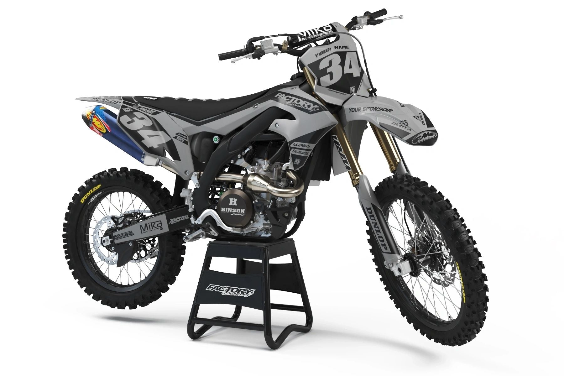 Full  graphic kits come custom with your sponsors logo if desired, your number and colors printed on the industry's best vinyl by Substance®. Most models include graphics for shrouds, front tip, rear fender,  sides/front plate, swing arm, and fork decals.