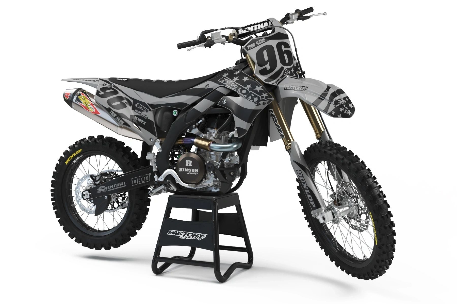Full  graphic kits come custom with your sponsors logo if desired, your number and colors printed on the industry's best vinyl by Substance®. Most models include graphics for shrouds, front tip, rear fender,  sides/front plate, swing arm, and fork decals.