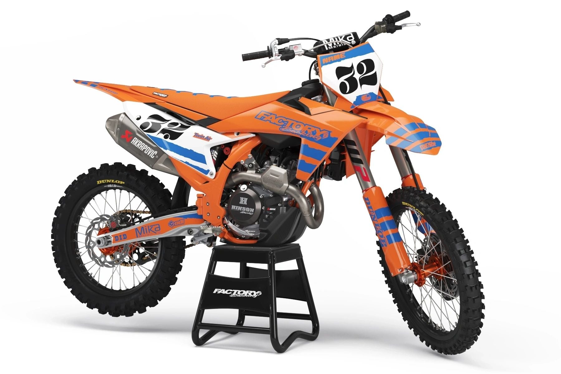 Full  graphic kits come custom with your sponsors logo if desired, your number and colors printed on the industry's best vinyl by Substance®. Most models include graphics for shrouds, front tip, rear fender,  sides/front plate, swing arm, and fork decals.