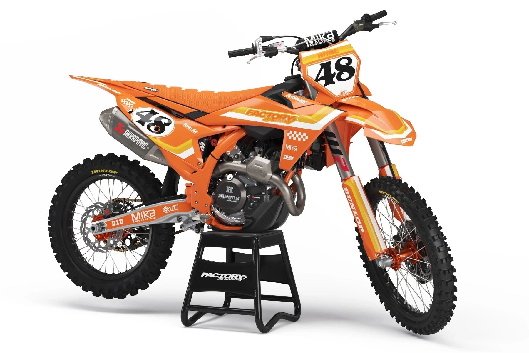 Full graphic kits come custom with your sponsors logo if desired, your number and colors printed on the industry's best vinyl by Substance®. Most models include graphics for shrouds, front tip, rear fender, sides/front plate, swing arm, and fork decals.