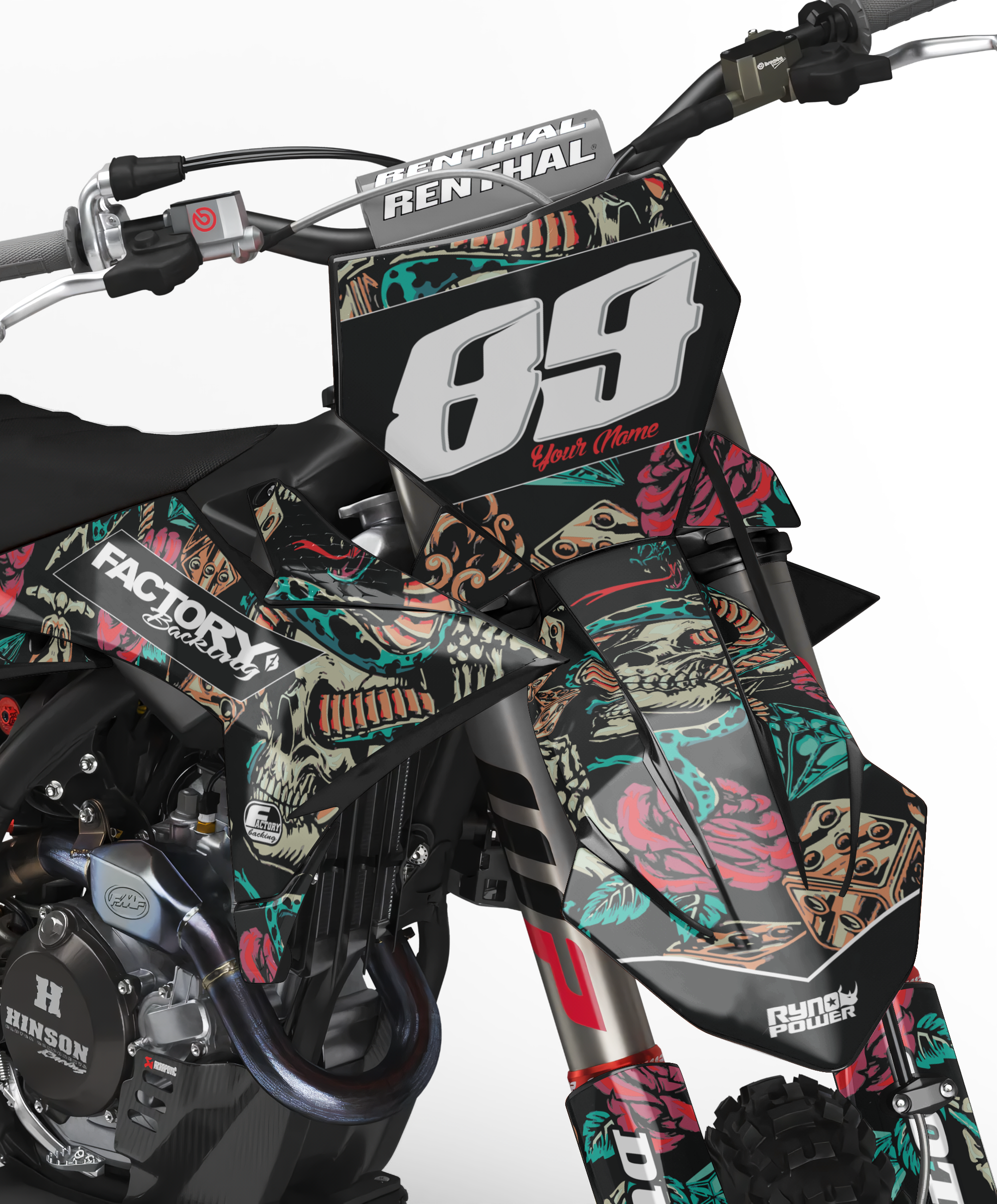 Full graphic kits come custom with your sponsors logo if desired, your number and colors printed on the industry's best vinyl by Substance®. Most models include graphics for shrouds, front tip, rear fender, sides/front plate, swing arm, and fork decals.