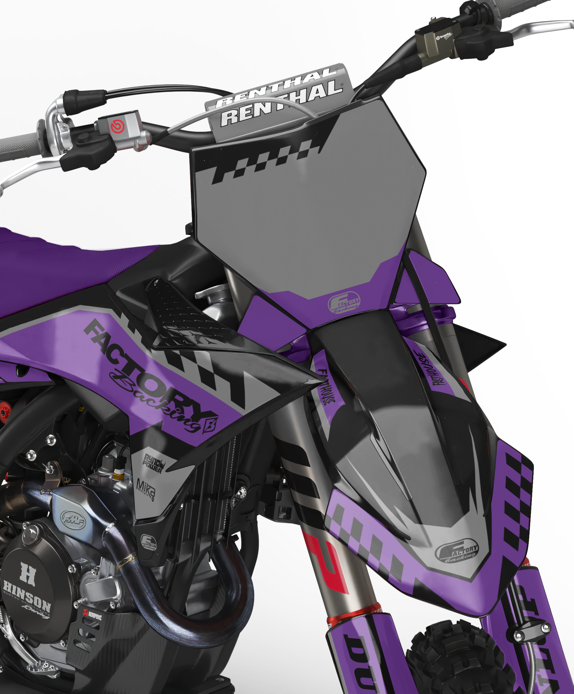 Full graphic kits come custom with your sponsors logo if desired, your number and colors printed on the industry's best vinyl by Substance®. Most models include graphics for shrouds, front tip, rear fender, sides/front plate, swing arm, and fork decals.