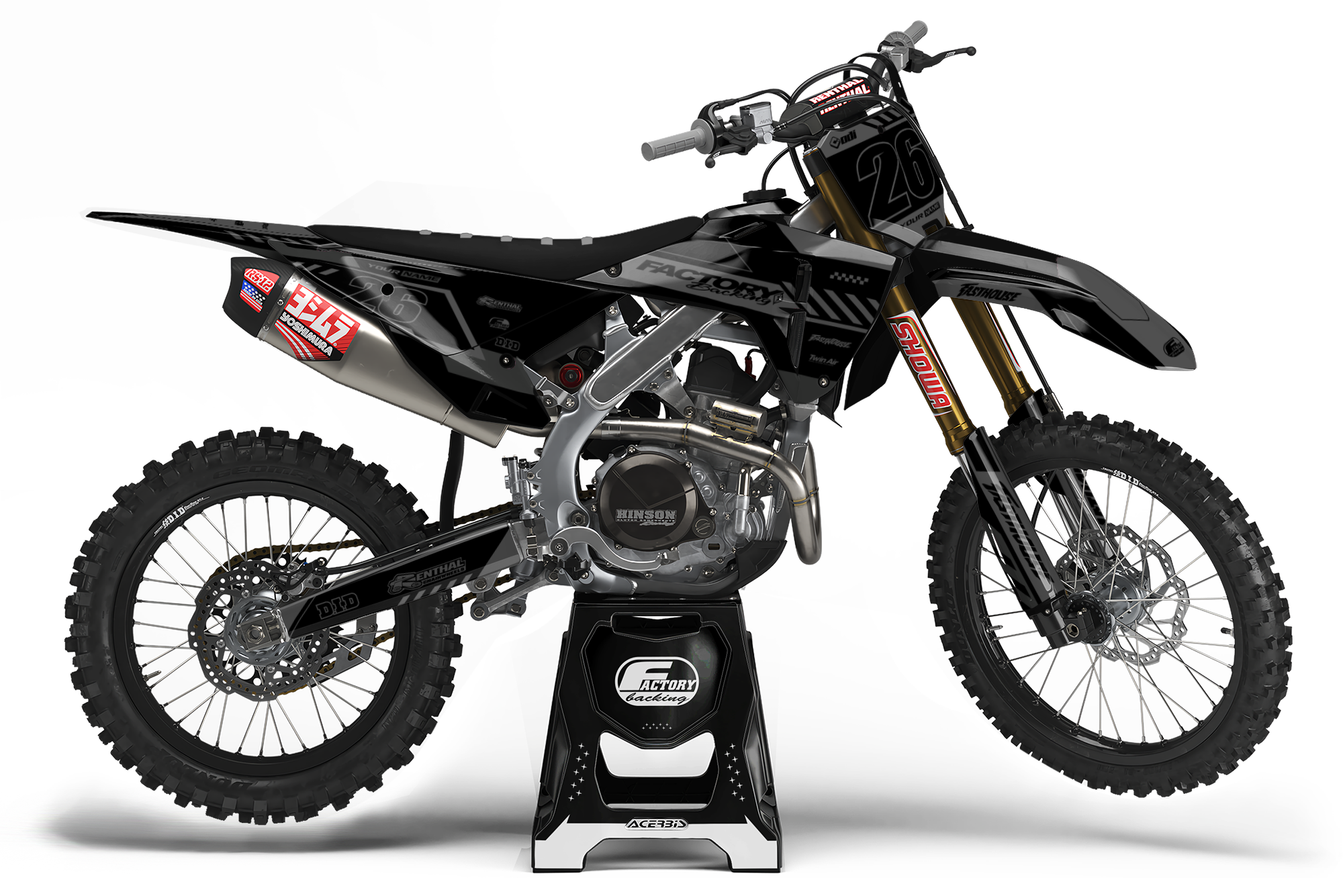 Full  graphic kits come custom with your sponsors logo if desired, your number and colors printed on the industry's best vinyl by Substance®. Most models include graphics for shrouds, front tip, rear fender,  sides/front plate, swing arm, and fork decals.
