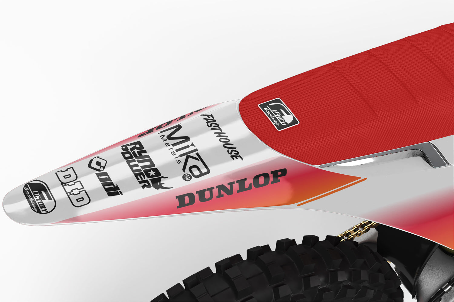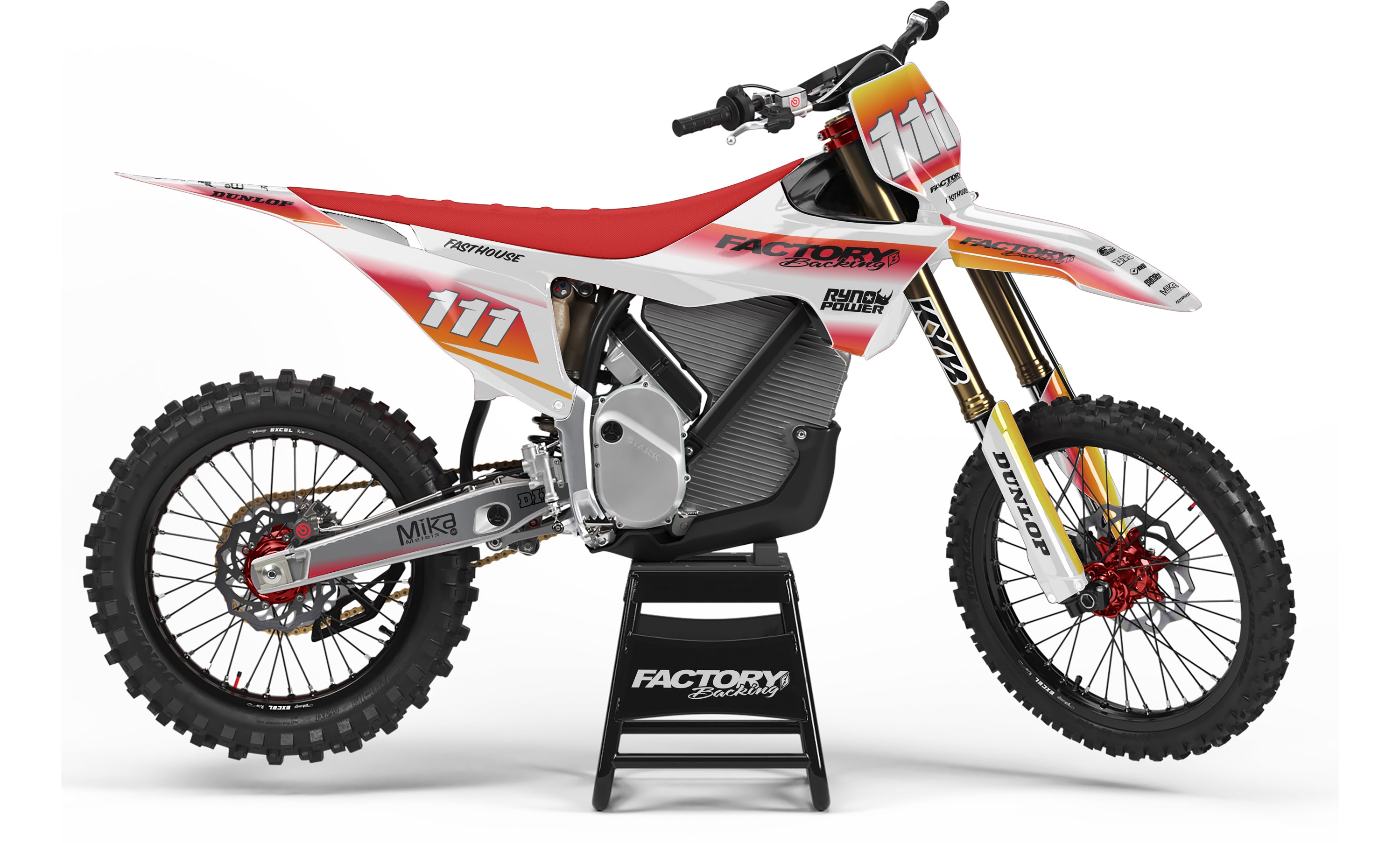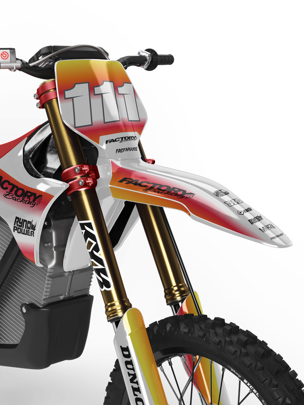 Full  graphic kits come custom with your sponsors logo if desired, your number and colors printed on the industry's best vinyl by Substance®. Most models include graphics for shrouds, front tip, rear fender,  sides/front plate, swing arm, and fork decals.