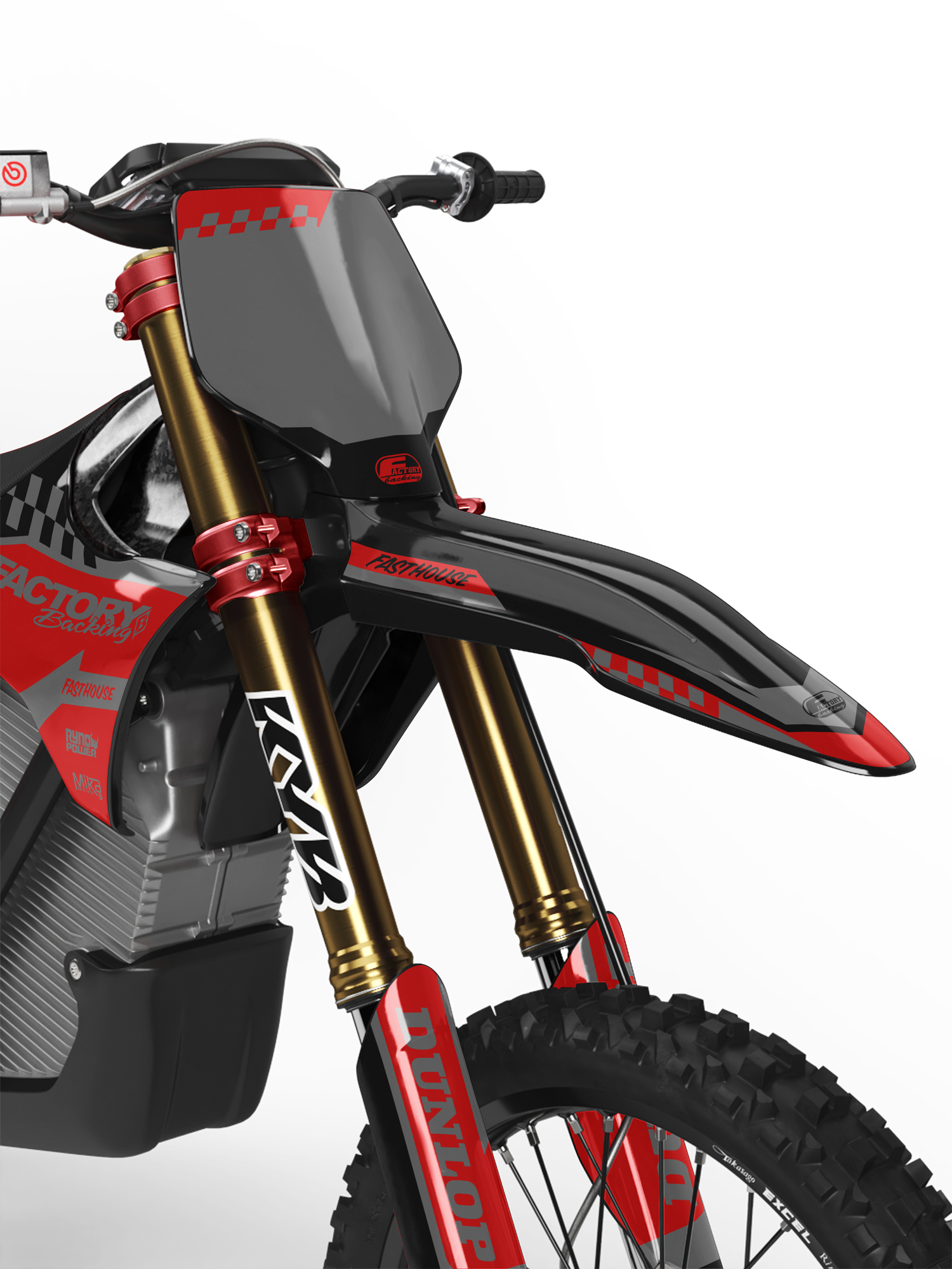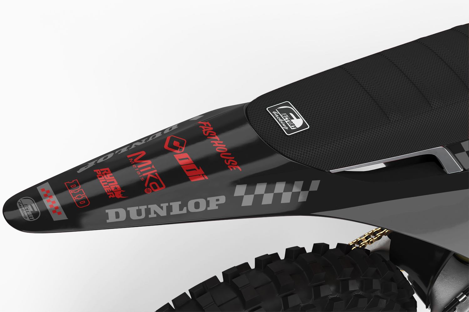 Full  graphic kits come custom with your sponsors logo if desired, your number and colors printed on the industry's best vinyl by Substance®. Most models include graphics for shrouds, front tip, rear fender,  sides/front plate, swing arm, and fork decals.