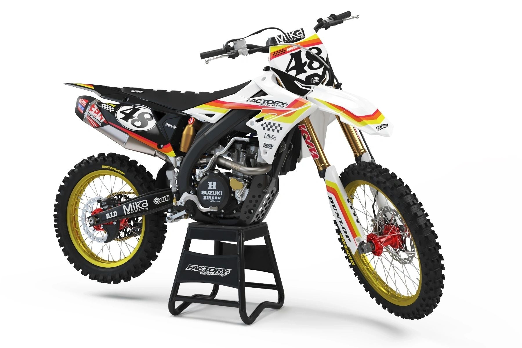 Full graphic kits come custom with your sponsors logo if desired, your number and colors printed on the industry's best vinyl by Substance®. Most models include graphics for shrouds, front tip, rear fender, sides/front plate, swing arm, and fork decals.