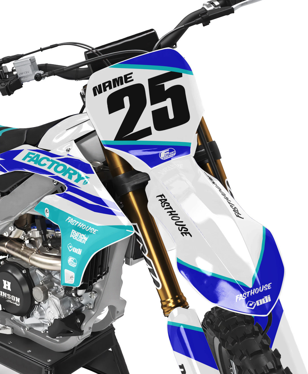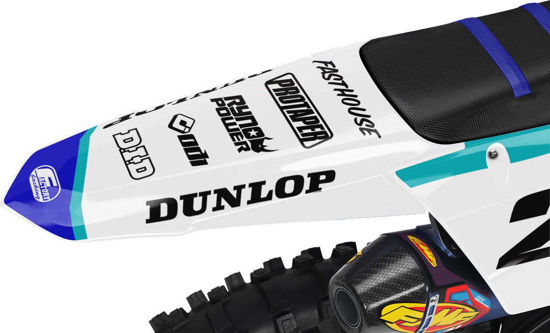 Full  graphic kits come custom with your sponsors logo if desired, your number and colors printed on the industry's best vinyl by Substance®. Most models include graphics for shrouds, front tip, rear fender,  sides/front plate, swing arm, and fork decals.