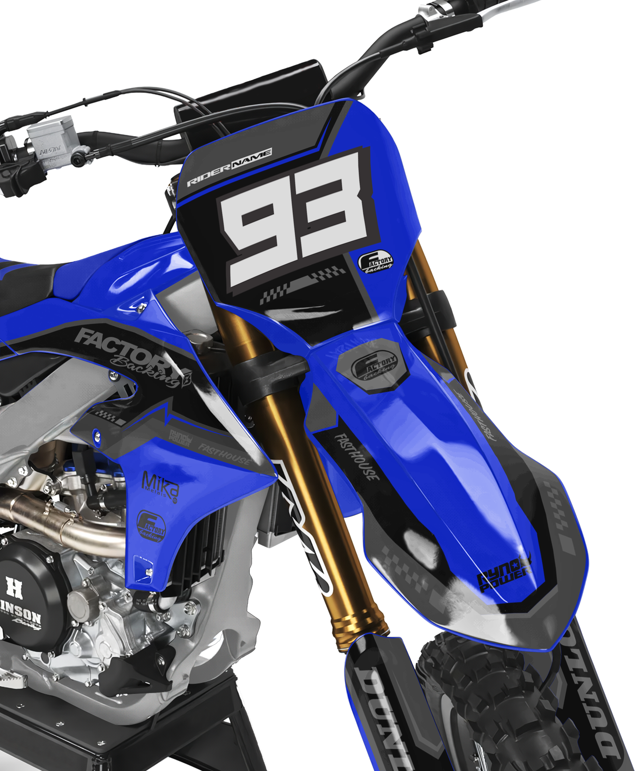 Full graphic kits come custom with your sponsors logo if desired, your number and colors printed on the industry's best vinyl by Substance®. Most models include graphics for shrouds, front tip, rear fender, sides/front plate, swing arm, and fork decals.