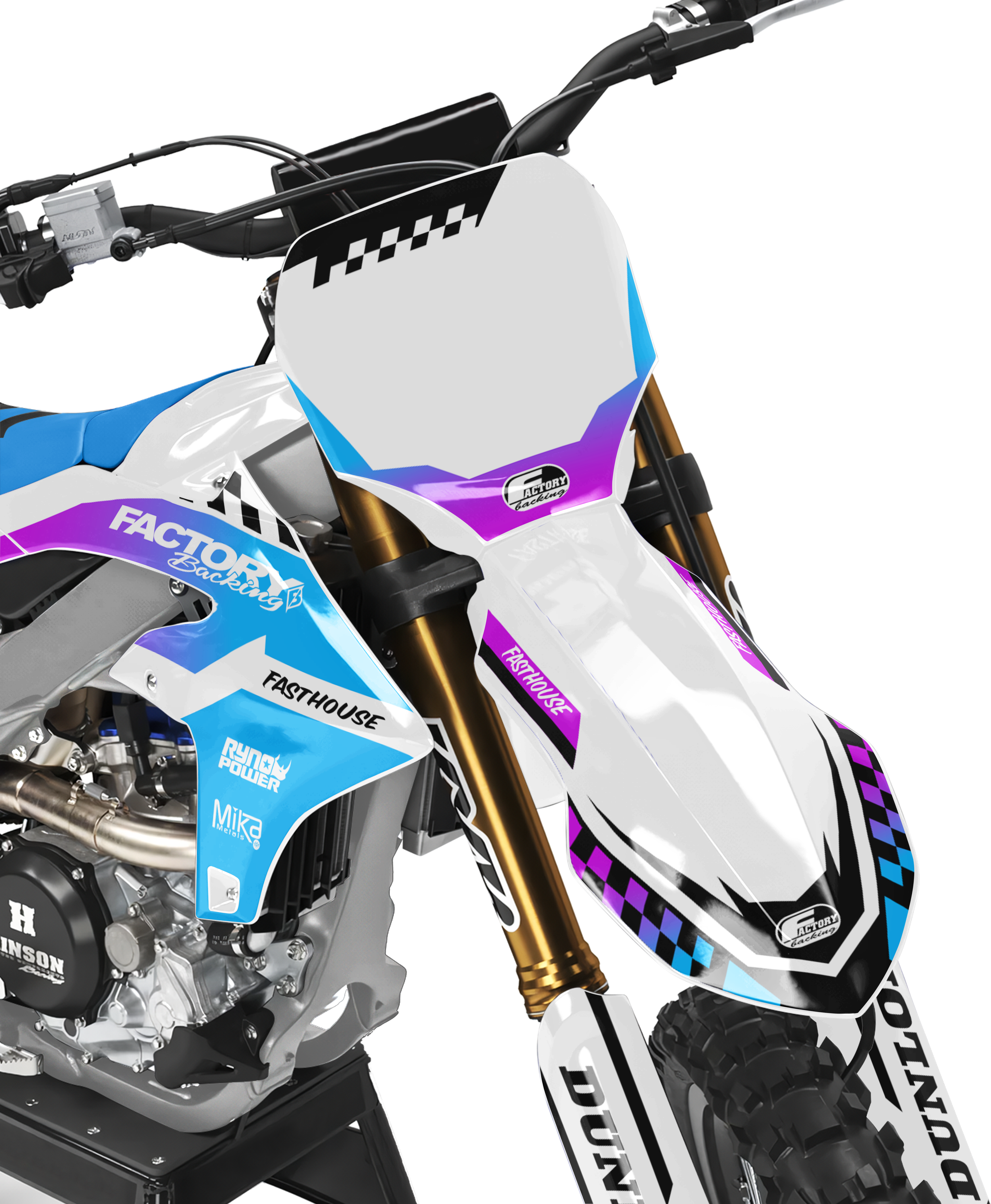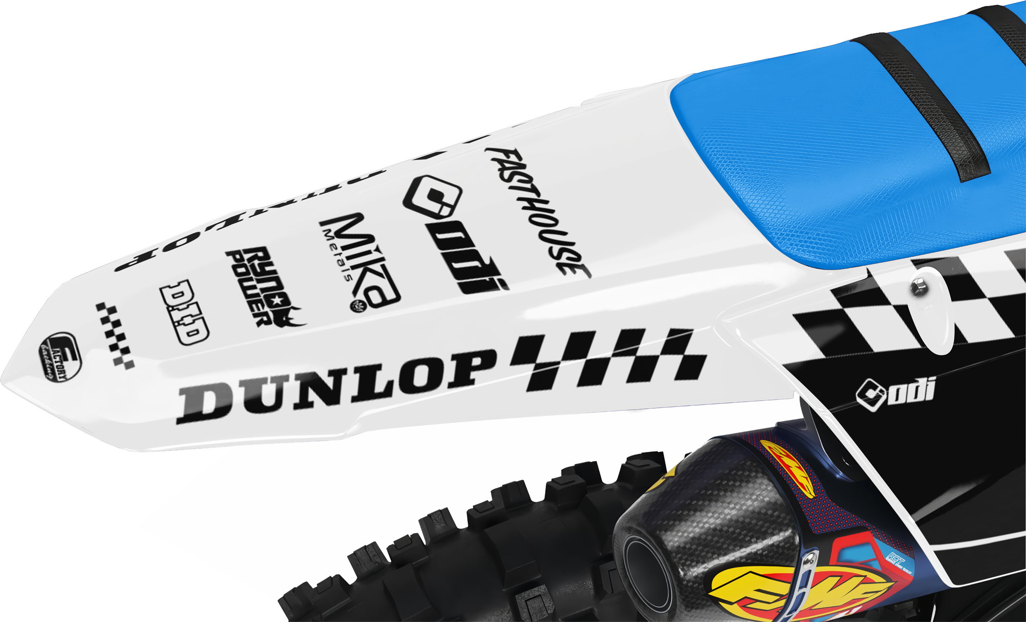 Full graphic kits come custom with your sponsors logo if desired, your number and colors printed on the industry's best vinyl by Substance®. Most models include graphics for shrouds, front tip, rear fender, sides/front plate, swing arm, and fork decals.
